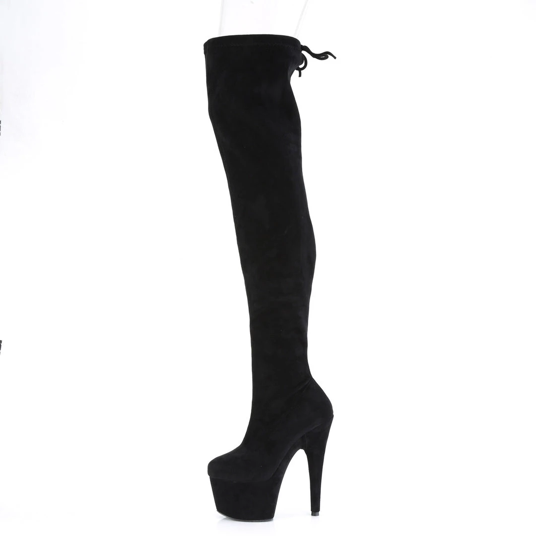 Adore 3008 Black Faux Suede Thigh High Boots by Pleaser Shoes