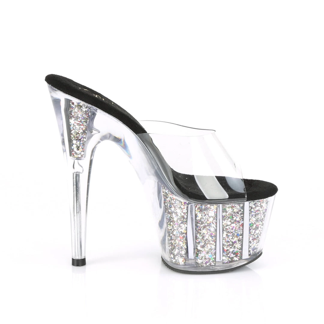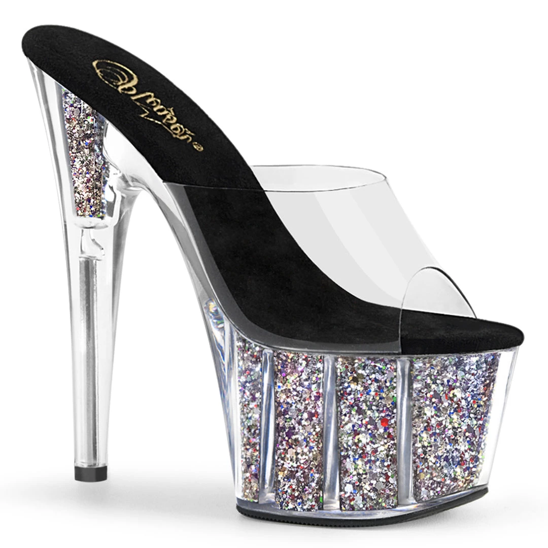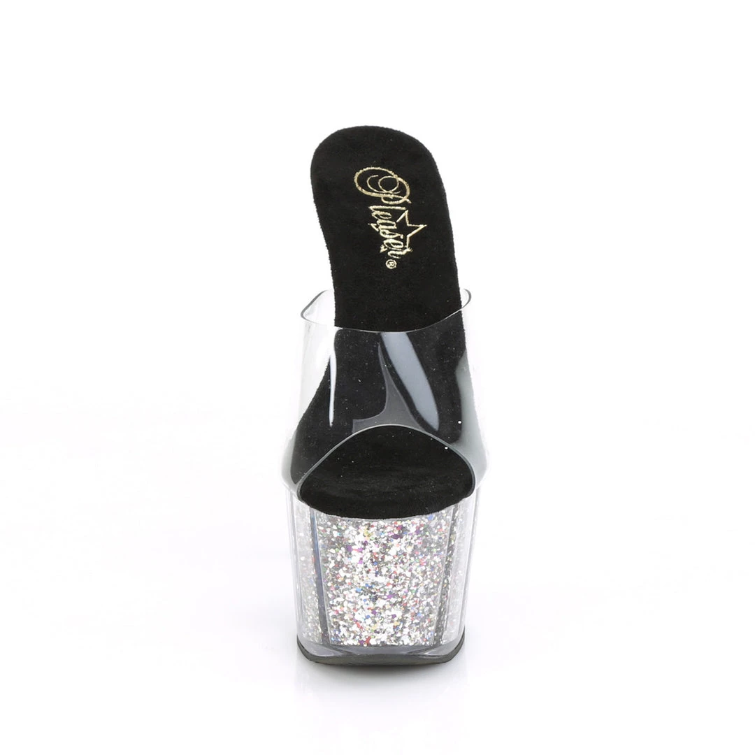7 (178mm) Heel, 2 3/4 (70mm) Platform Slide w/ Confetti Glitter Inserts in the Platform Bottom