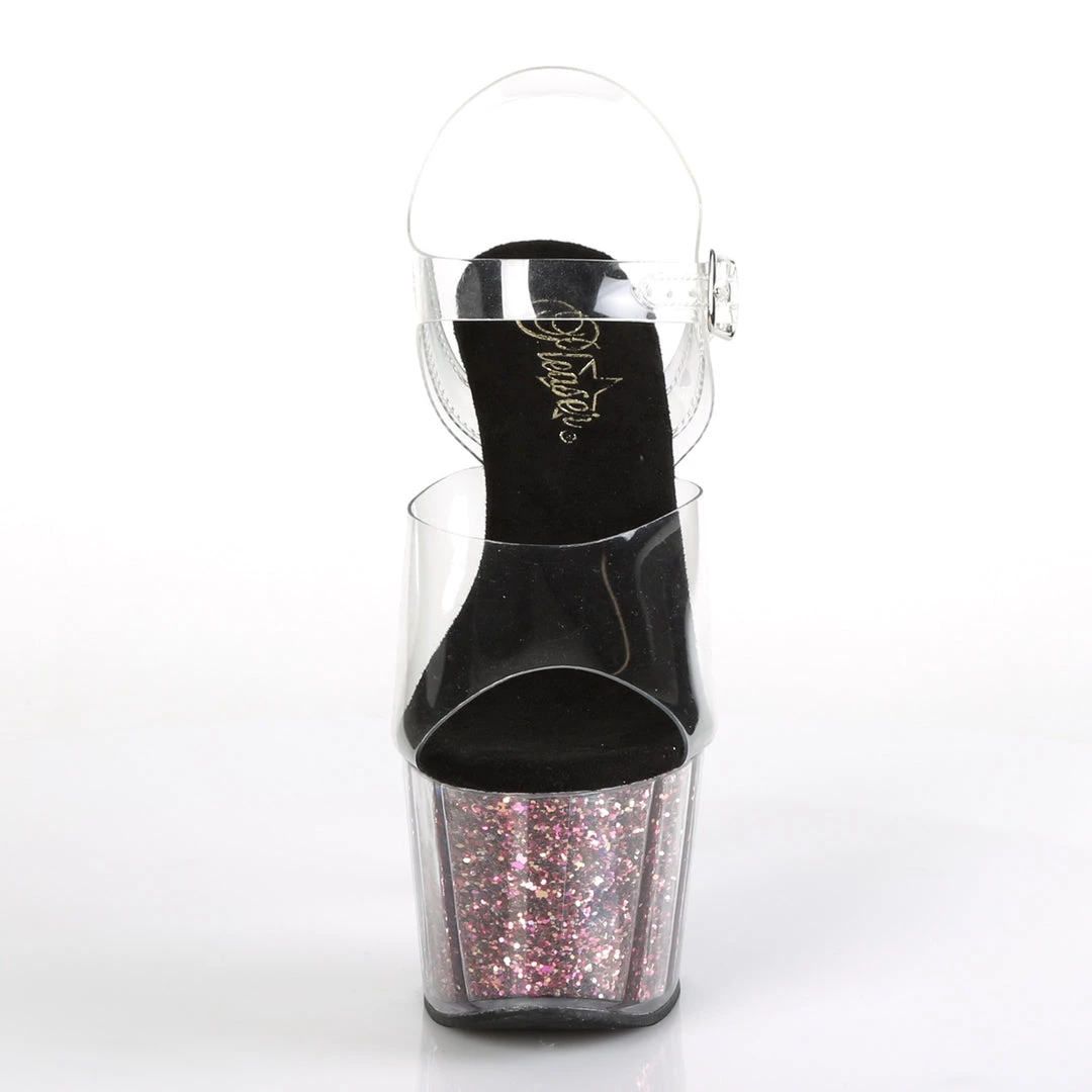 7 (178mm) Heel, 2 3/4 (70mm) Platform Ankle Strap Sandal w/ Confetti Glitter Inserts in the Platform Bottom