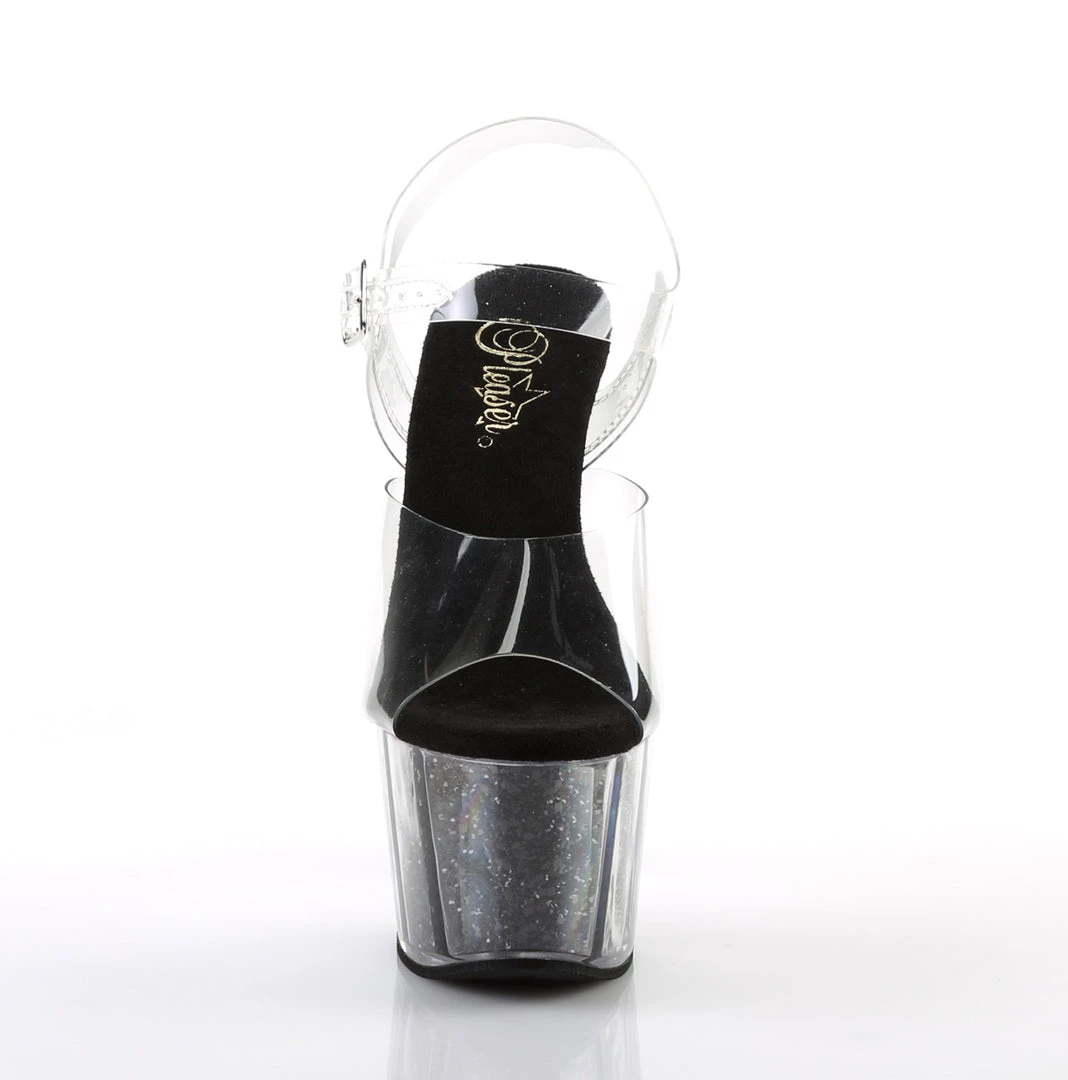 7 (178mm) Heel, 2 3/4 (70mm) Platform Ankle Strap Sandal w/ Glitter Inserts In the Platform Bottom