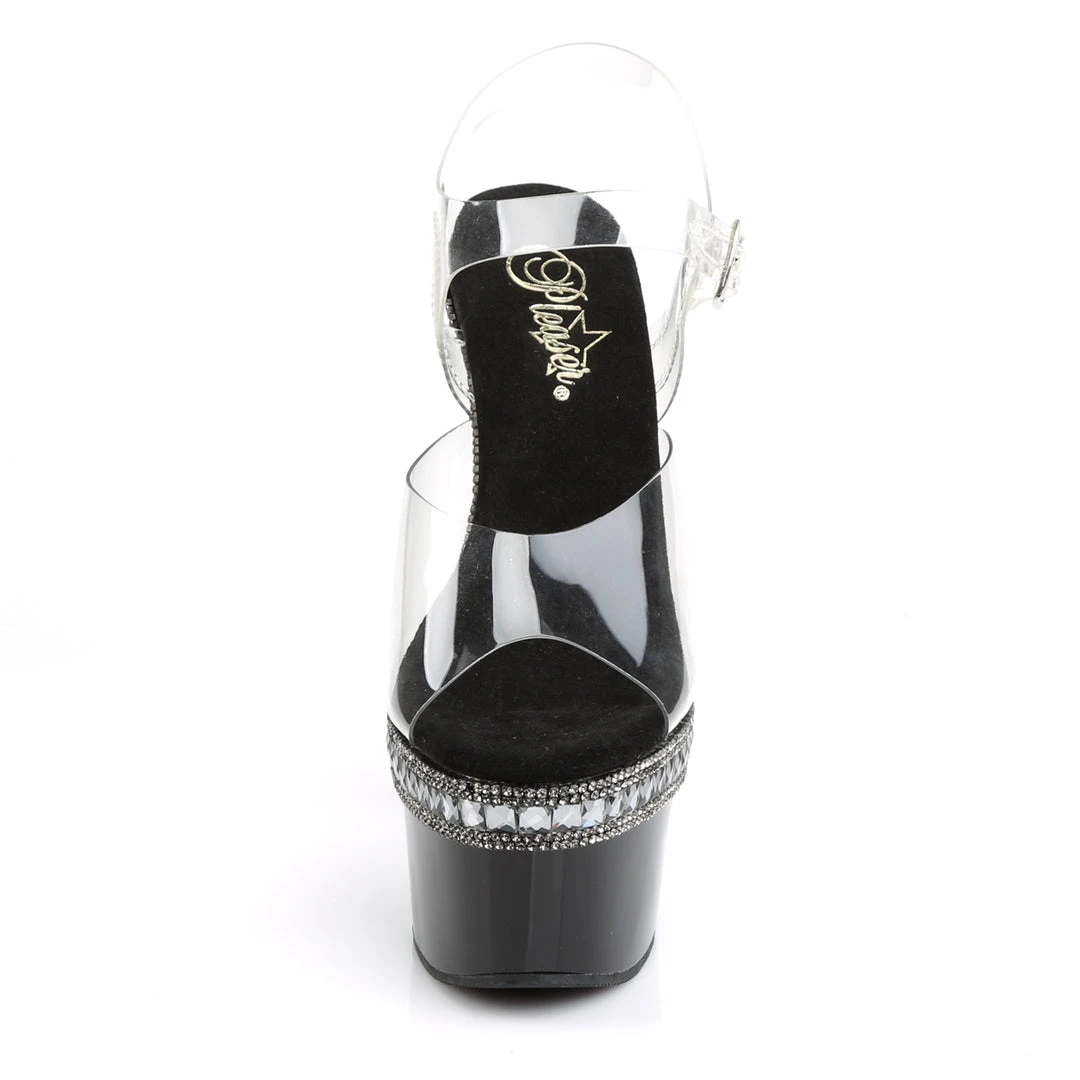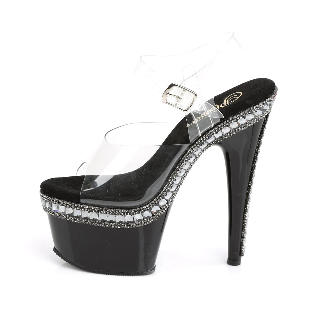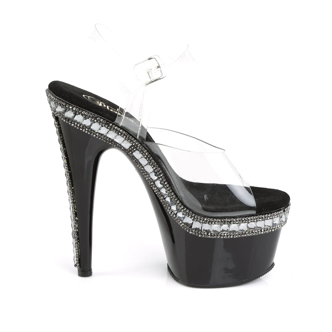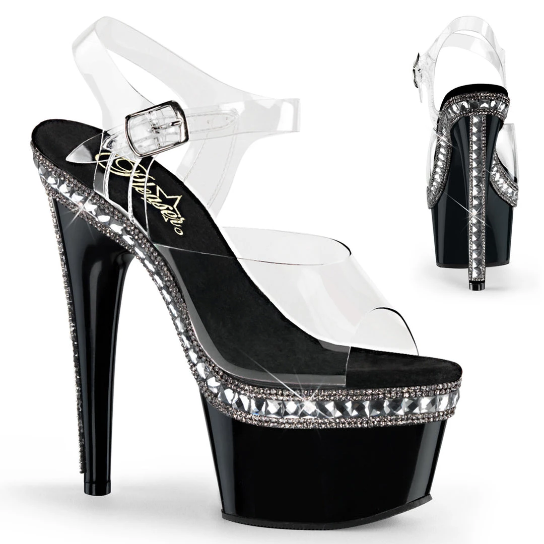 Adore 708RS1 Black with Clear Rhinestone Platforms