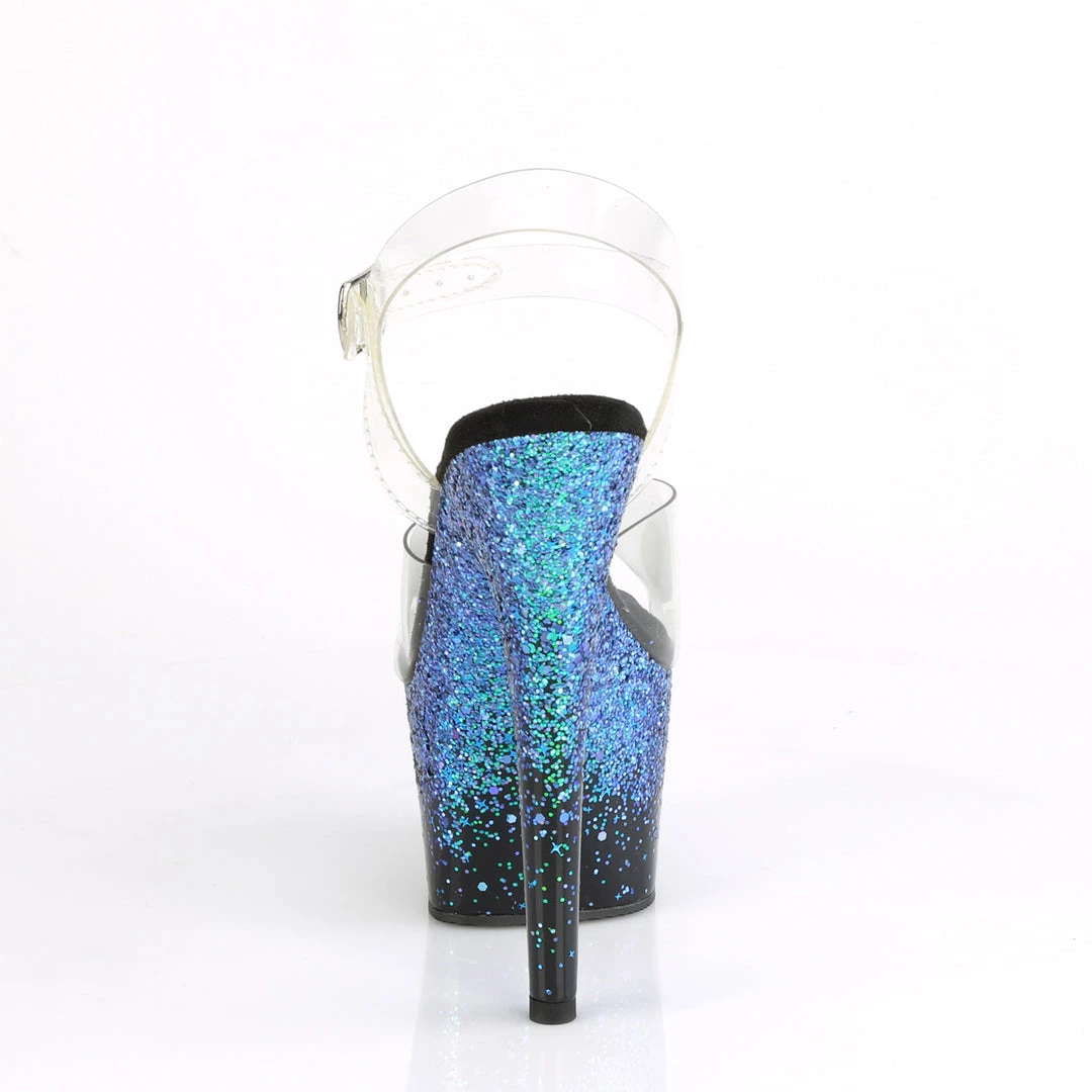 7 (178mm) Heel, 2 3/4 (70mm) Platform Ankle Strap Sandal w/Holographic Gradient Effect on the Platform Bottom