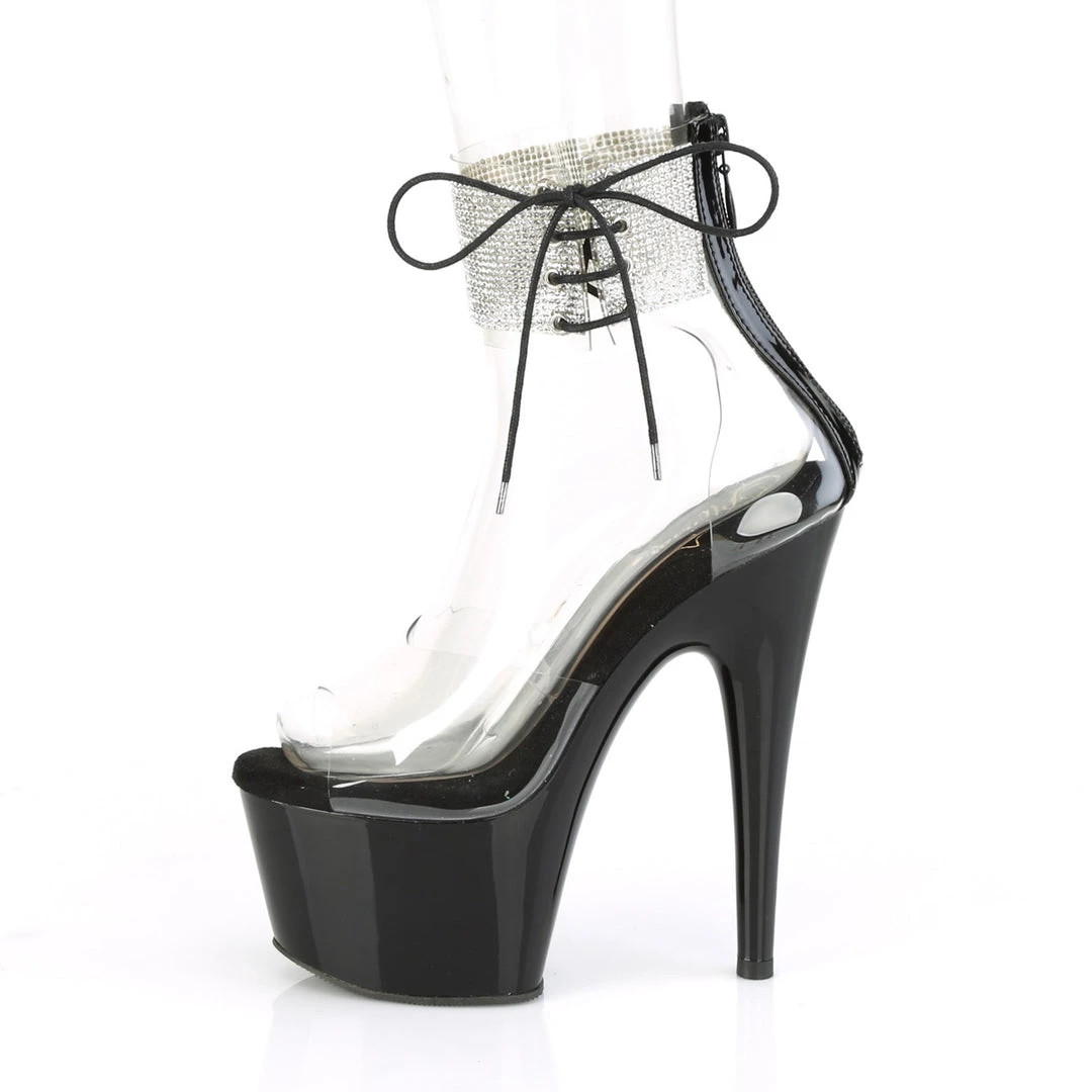 7 (178mm) Heel, 2 3/4 (70mm) Platform Close Back Rhinestone Embellished Ankle Cuff Sandal w/Side Lacing, Back Zip Closure