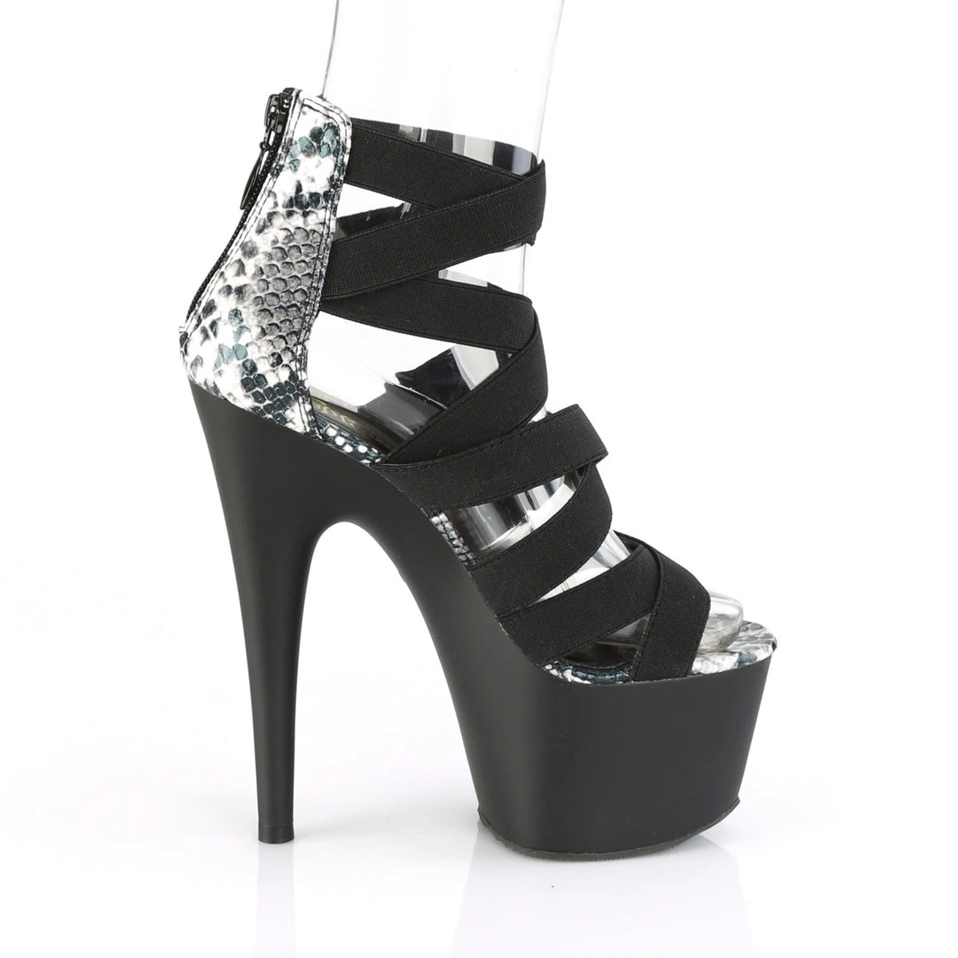 7 (178mm) Heel, 2 3/4 (70mm) Platform Close Back Sandal w/ Multiple Criss Cross Elastic Straps, Back Zip Closure