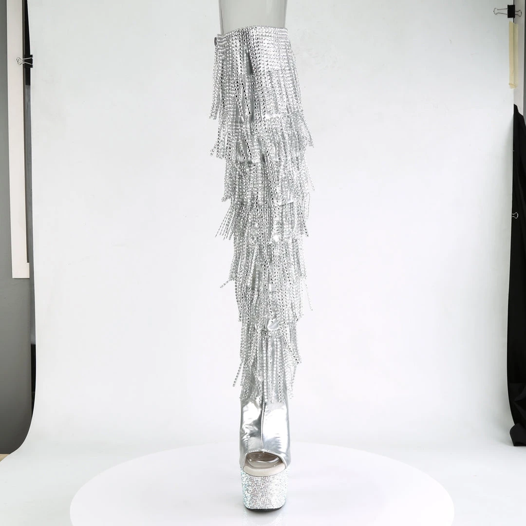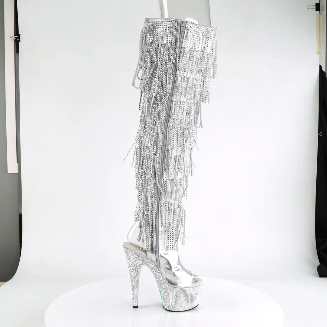 Bejeweled 3019RSF-7Â Silver Rhinestone Fringe Thigh High Boots by Pleaser ShoesÂ