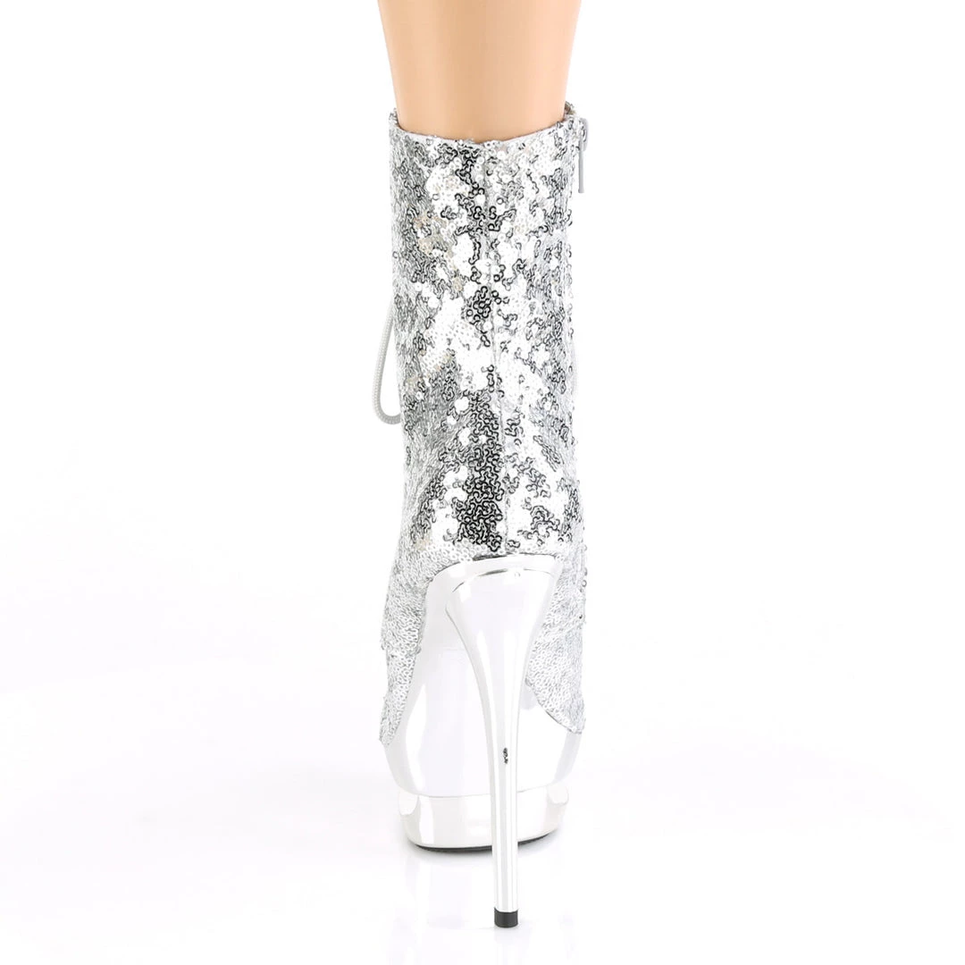 Blondie R 1020 Silver Sequin Rhinestone Ankle Boots by Pleaser Shoes