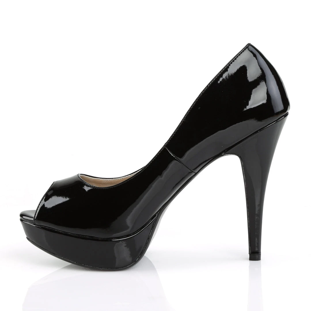Chloe 01 Black Patent Peep Toe Platforms by Pleaser Shoes