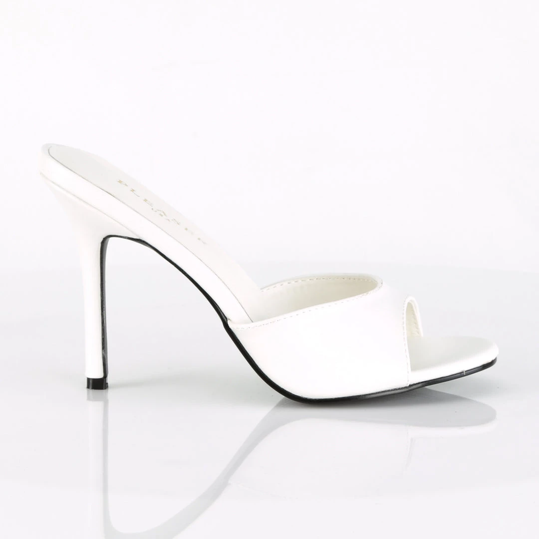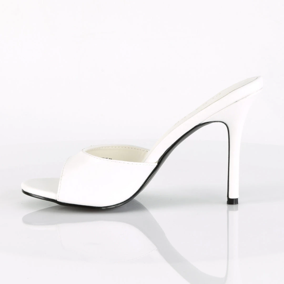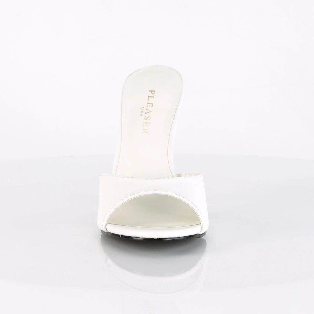 Classique 01 White Faux Leather Peep Toe Sandals by Pleaser ShoesÂ