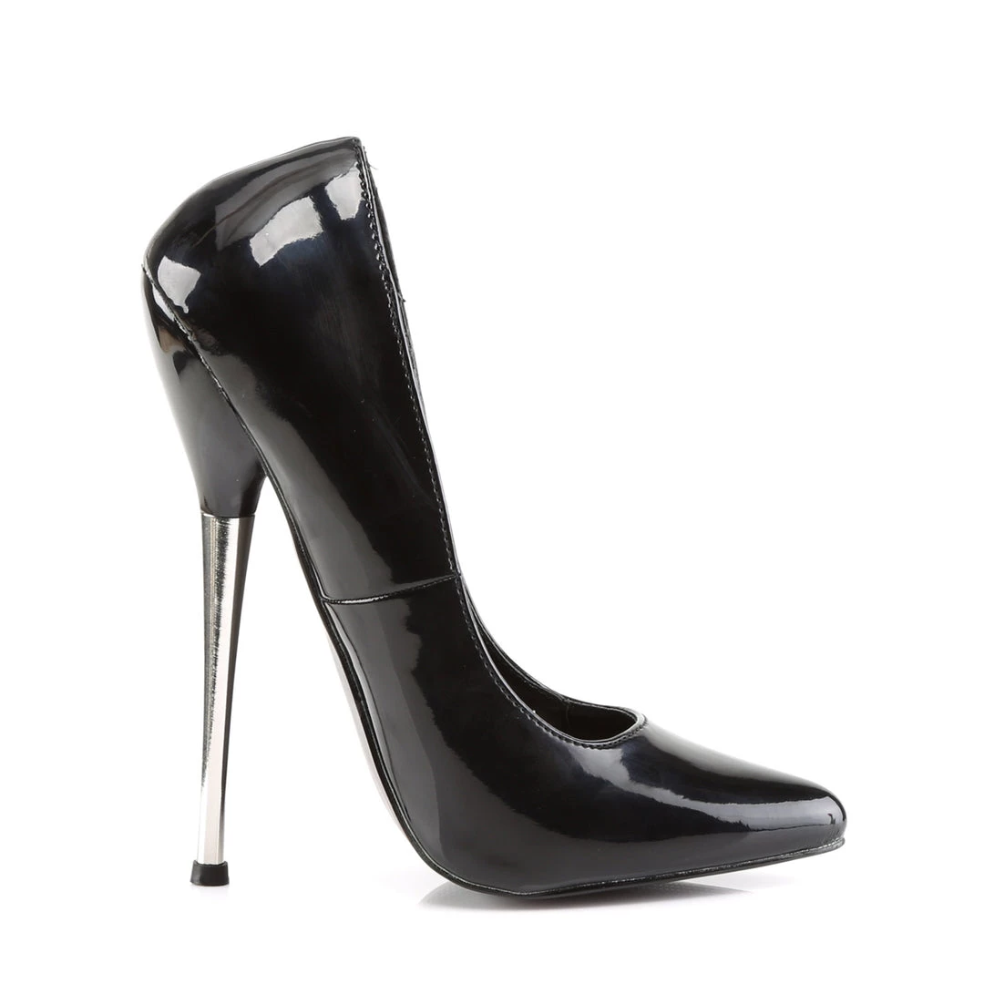 These black patent Dagger stiletto’s are a fetishist’s must-have. These sexy high heels have a 6 inch heel that make sure you’ll set the right kinky tone. This style is part of the Devious Range.