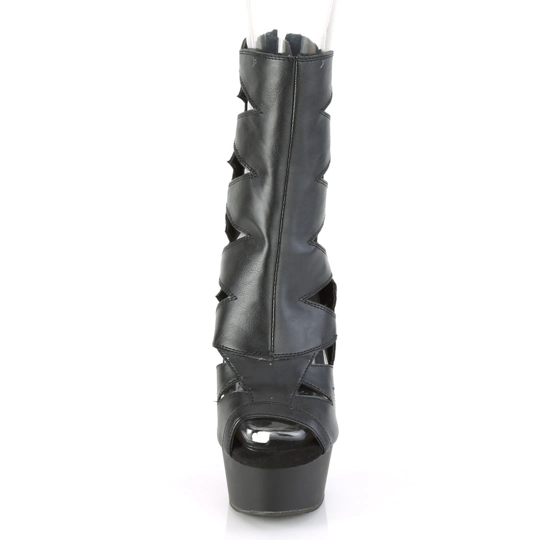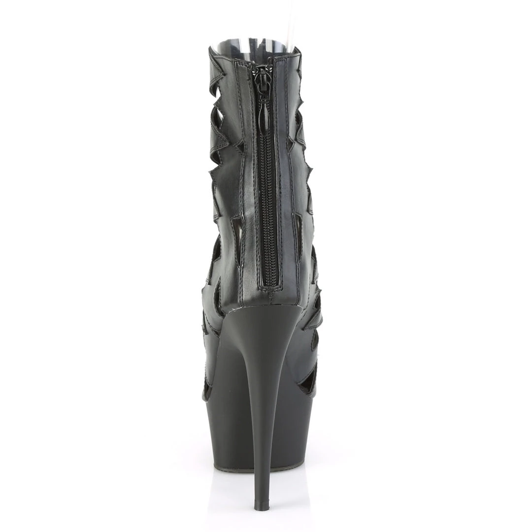 6 (152mm) Heel, 1 3/4 (45mm) Platform Peep Toe Cutout Ankle Boot, Back Zip Closure