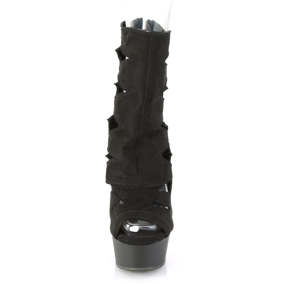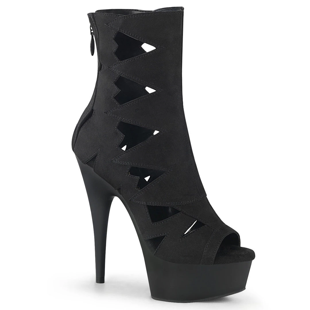 6 (152mm) Heel, 1 3/4 (45mm) Platform Peep Toe Cutout Ankle Boot, Back Zip Closure
