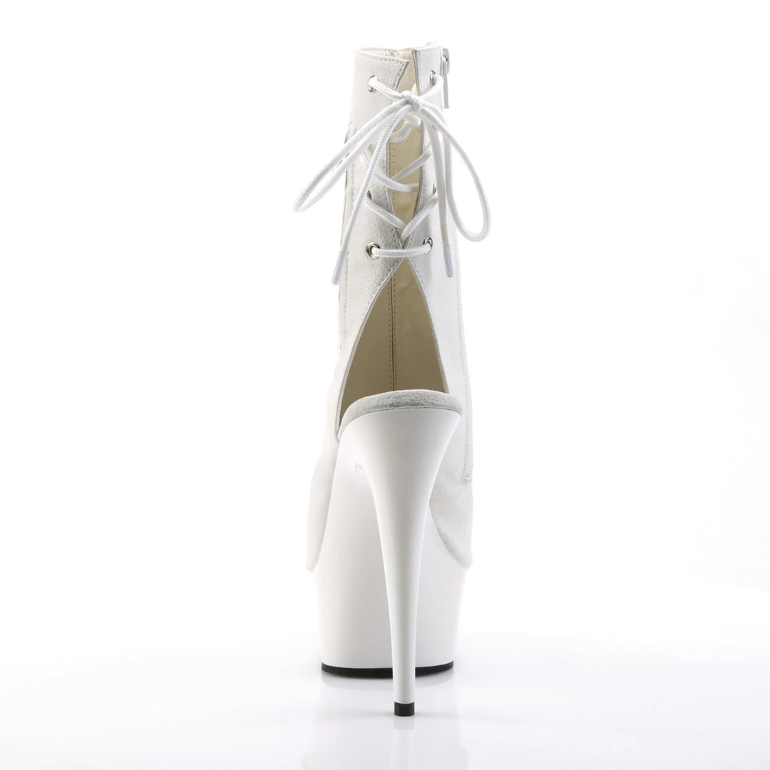 Delight 1018 White Faux Leather Ankle Boots by Pleaser Shoes