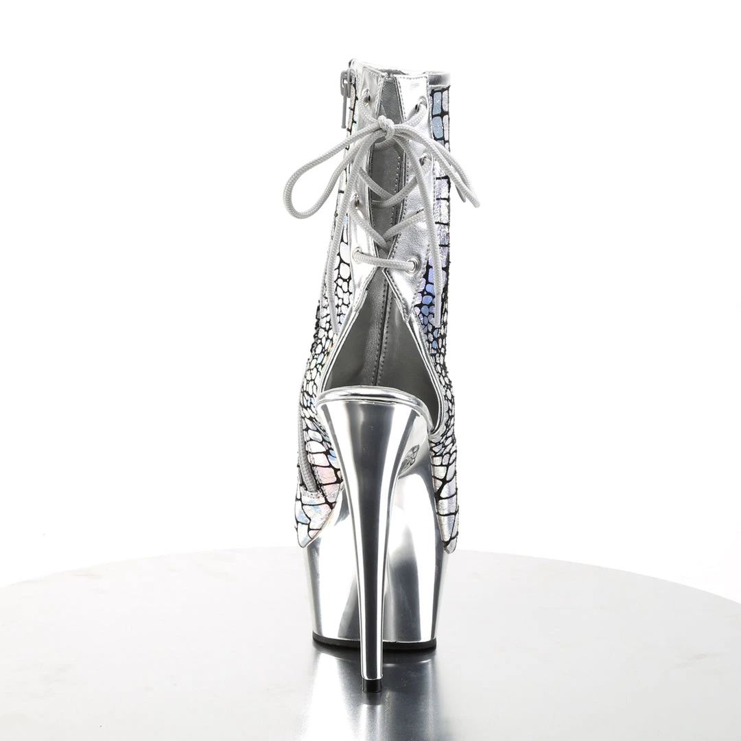 Delight 1018HG Holographic Silver Platform Boots by Pleaser Shoes