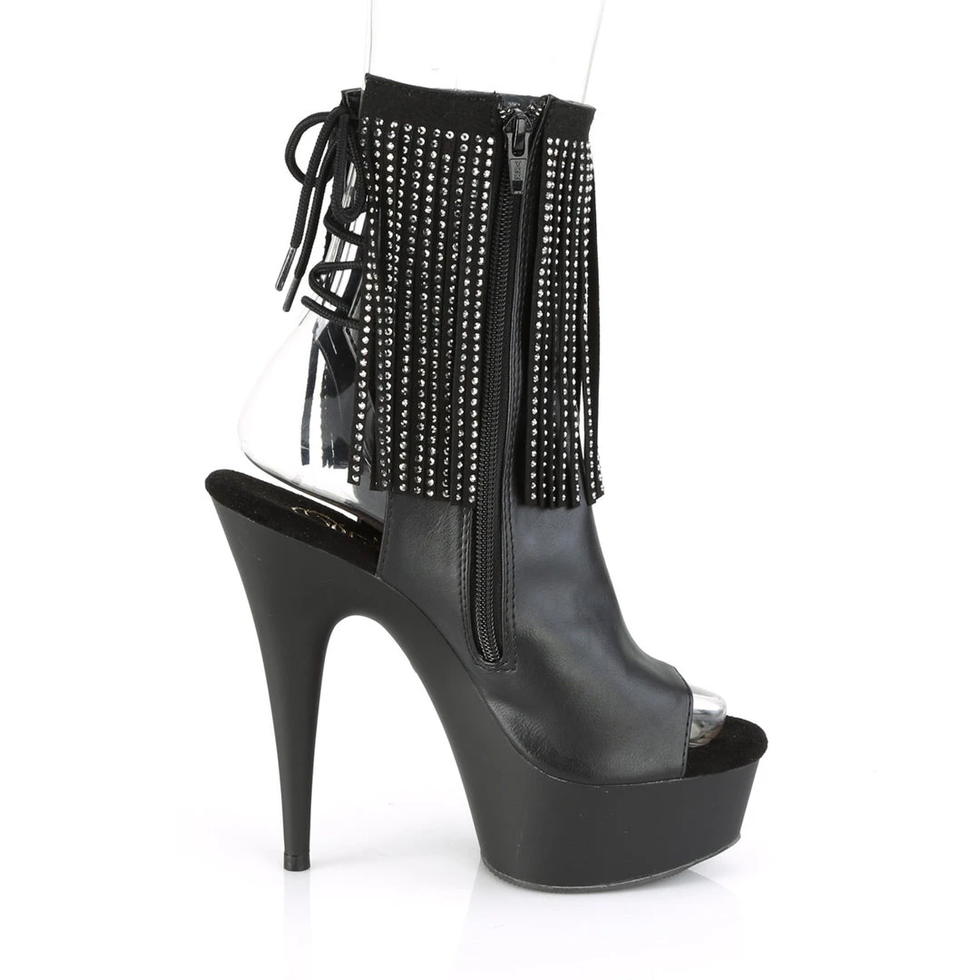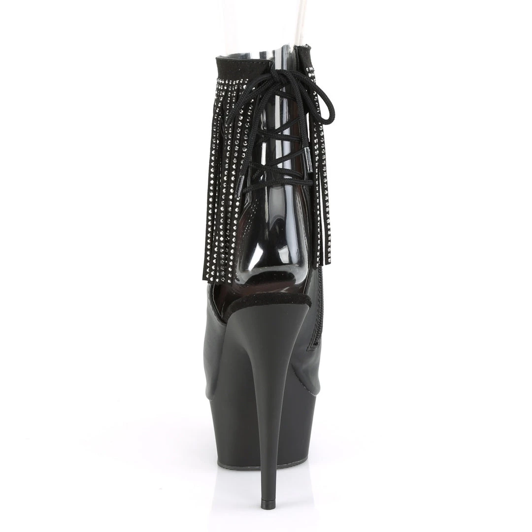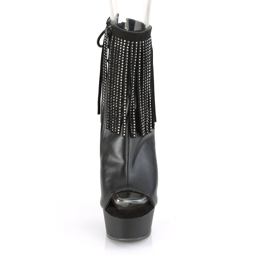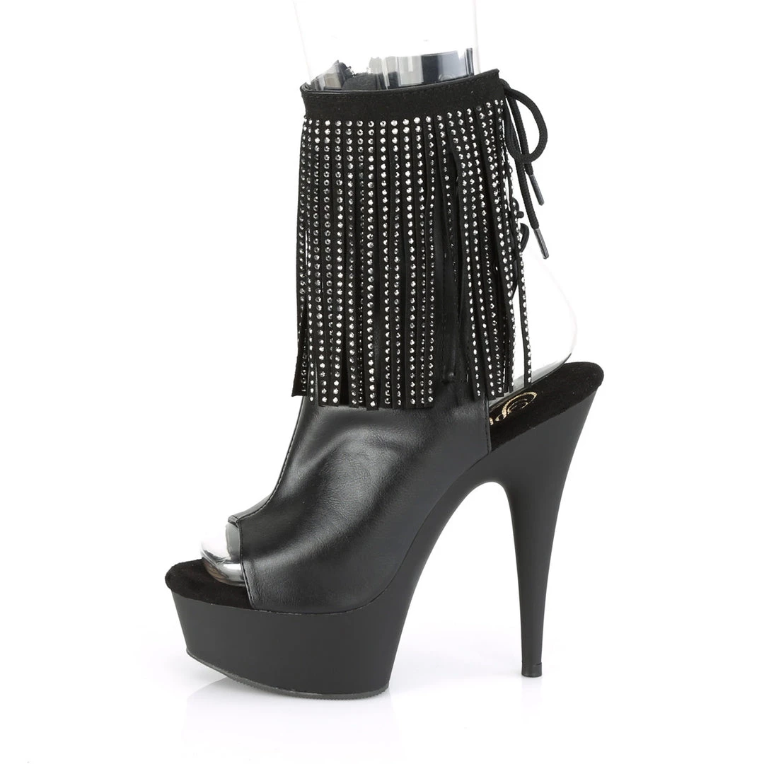 Delight 1018RSF Black Faux Leather Fringe Ankle Boots by Pleaser ShoesÂ