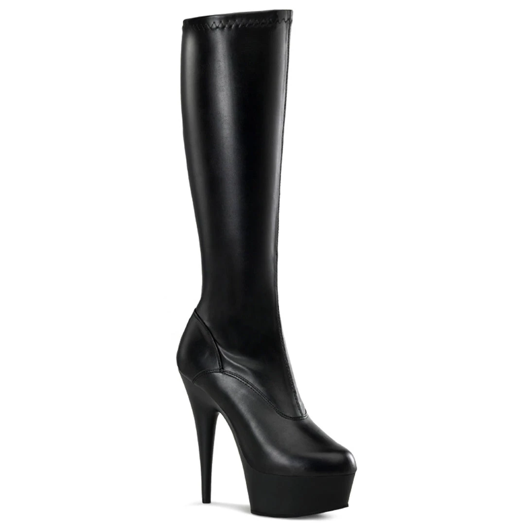 Delight 2000 Black Matte Knee High Boots by Pleaser Shoes
