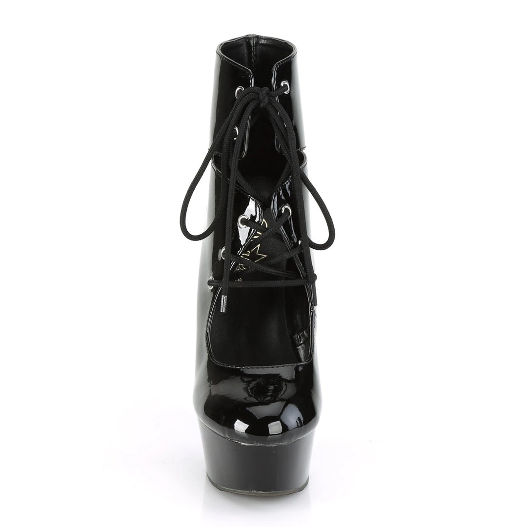 Delight 600-22 Black Patent Lace Up Ankle Boots by Pleaser Shoes