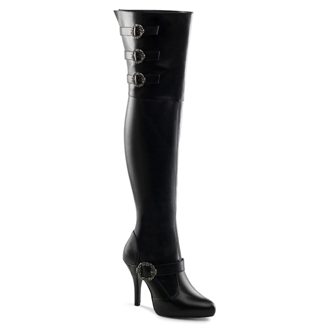 5 (12.7cm) Heel, 1/2 (1.3cm) Hidden Platform Wide Width Thigh High Boot, Featuring Octopus Shaped Buckles, Full Inner Side Zipper