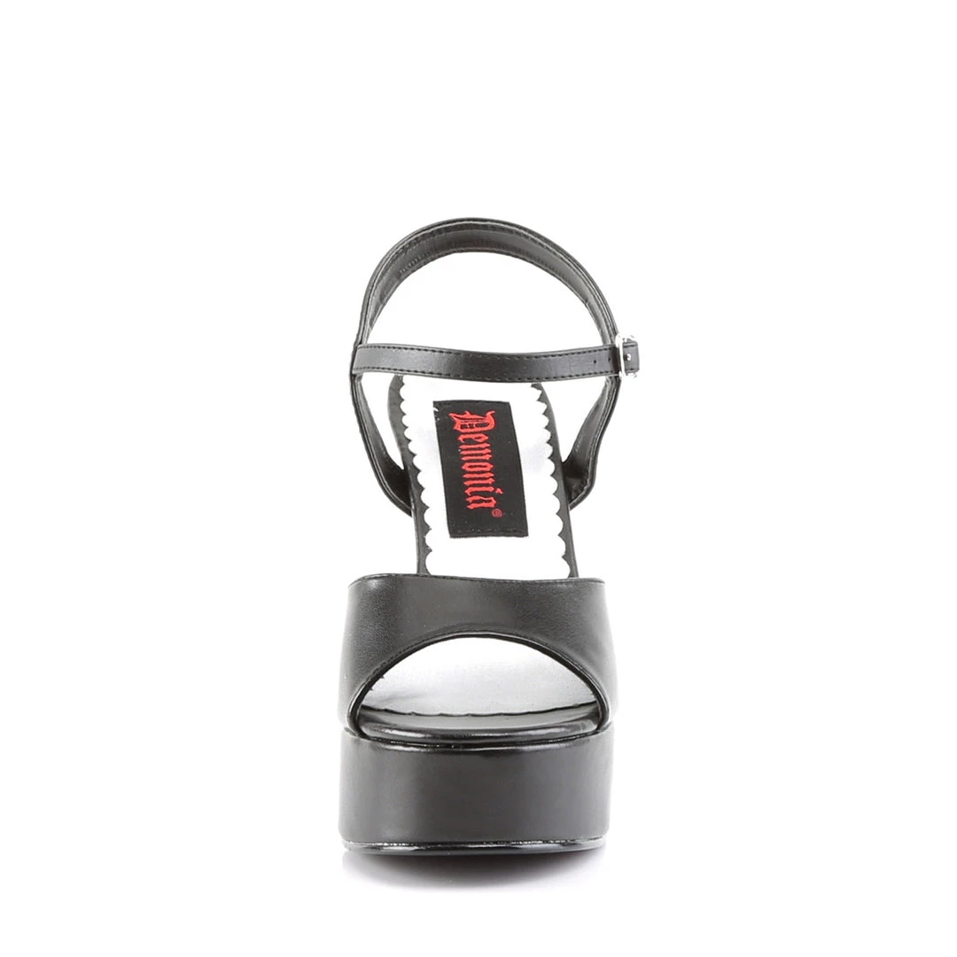 Thick and funky black patent 5 inch platform heels from Pleaser. These cute feminine shoes have a bit of edge and come with a flattering peep toe and comfortable ankle strap.Â