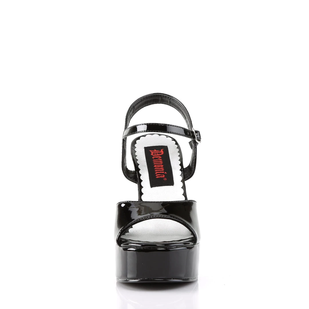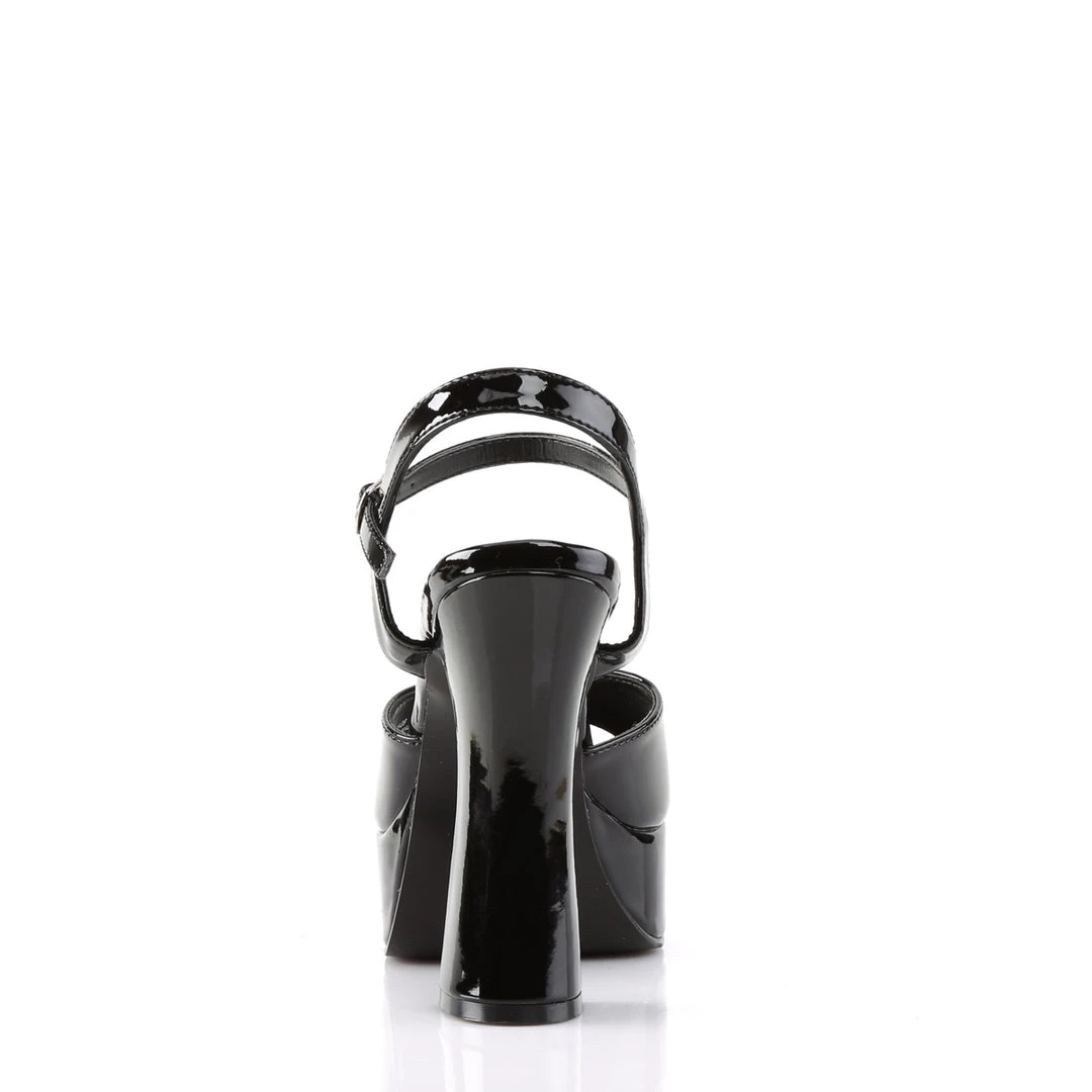 Thick and funky black patent 5 inch platform heels from Pleaser. These cute feminine shoes have a bit of edge and come with a flattering peep toe and comfortable ankle strap.Â
