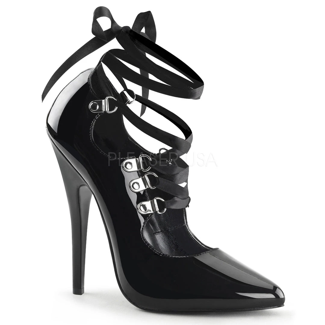 Domina 456 Black Patent Lace Up Pumps by Pleaser ShoesÂ