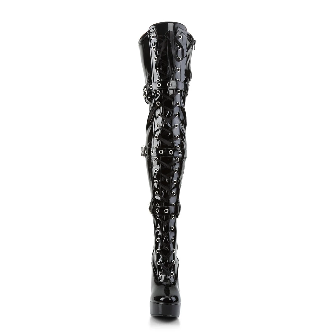Electra 3028 Black Patent Thigh High Boots by Pleaser ShoesÂ
