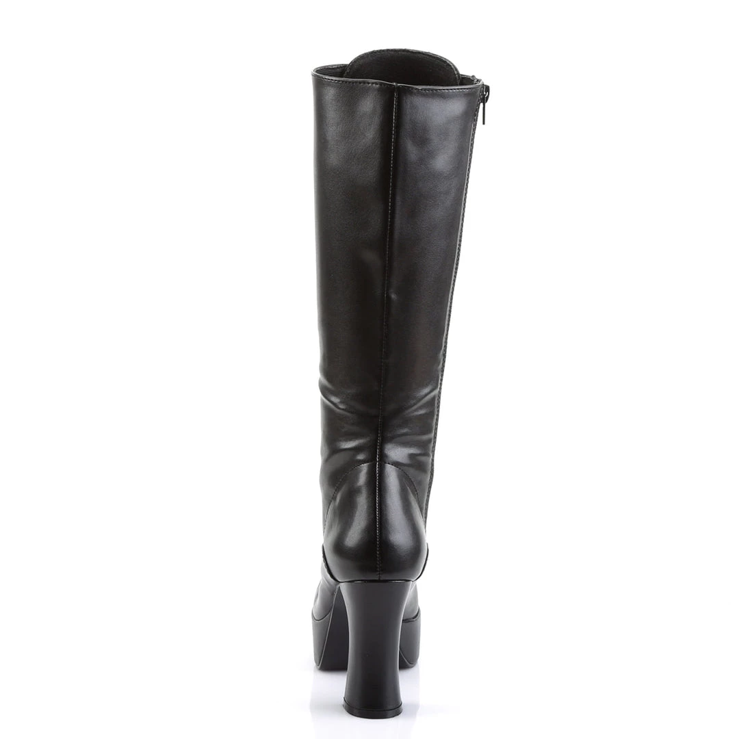 A simple but classic lace up matte faux leather platform knee high boot with a thick 4 inch heel and small platform.Â