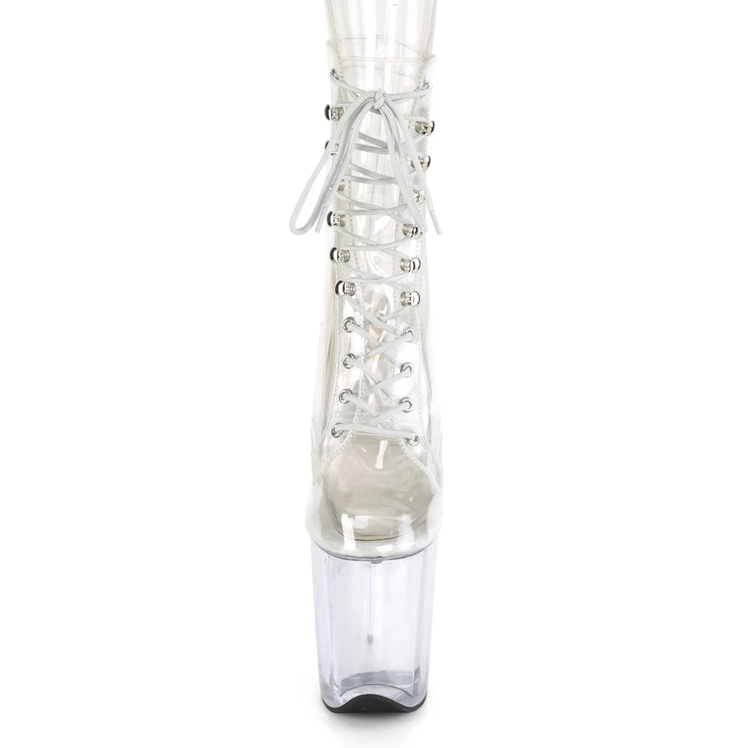 Flamingo 1020C Clear Lace Up Platform Ankle Boots by Pleaser Shoes