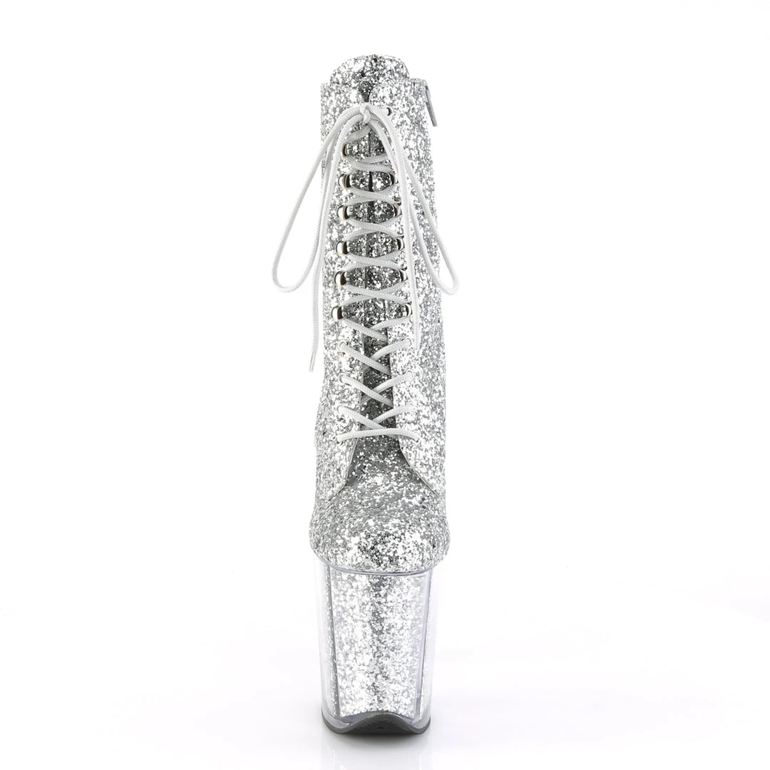 Flamingo 1020G Silver Glitter Platform Ankle Boots by Pleaser Shoes