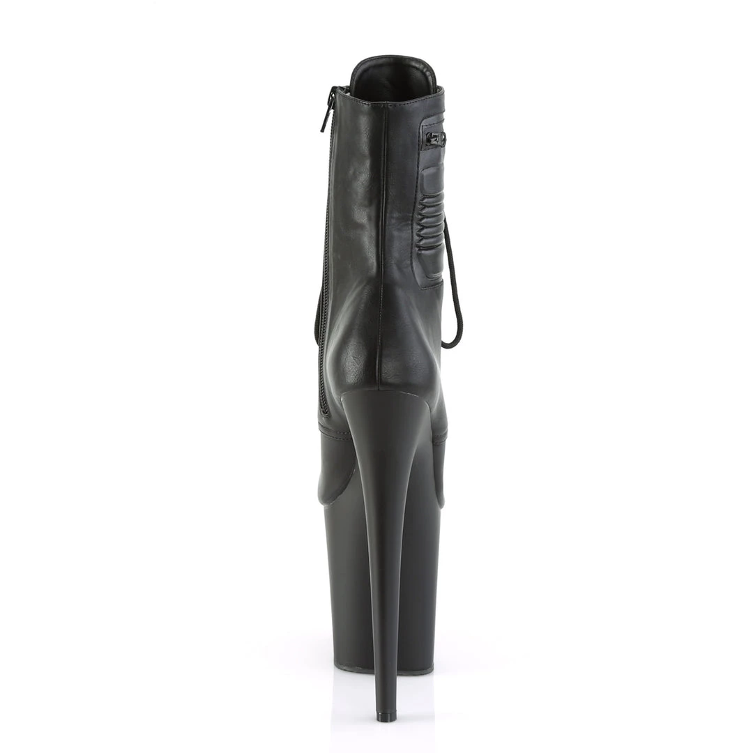 8 (200mm) Heel, 4 (100mm) Platform Lace-Up Front Ankle Boot w/ Outside Zippered Pocket, Inside Zip Closure