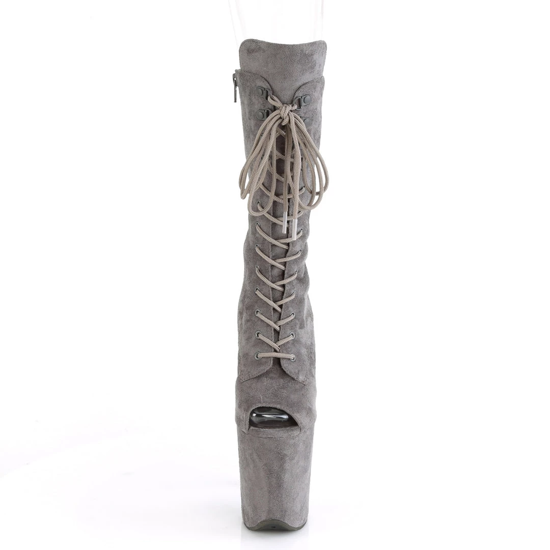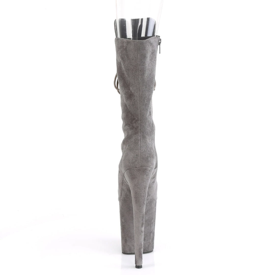 Flamingo 1051FS Grey Faux Suede Mid-Calf Boots by Pleaser Shoes