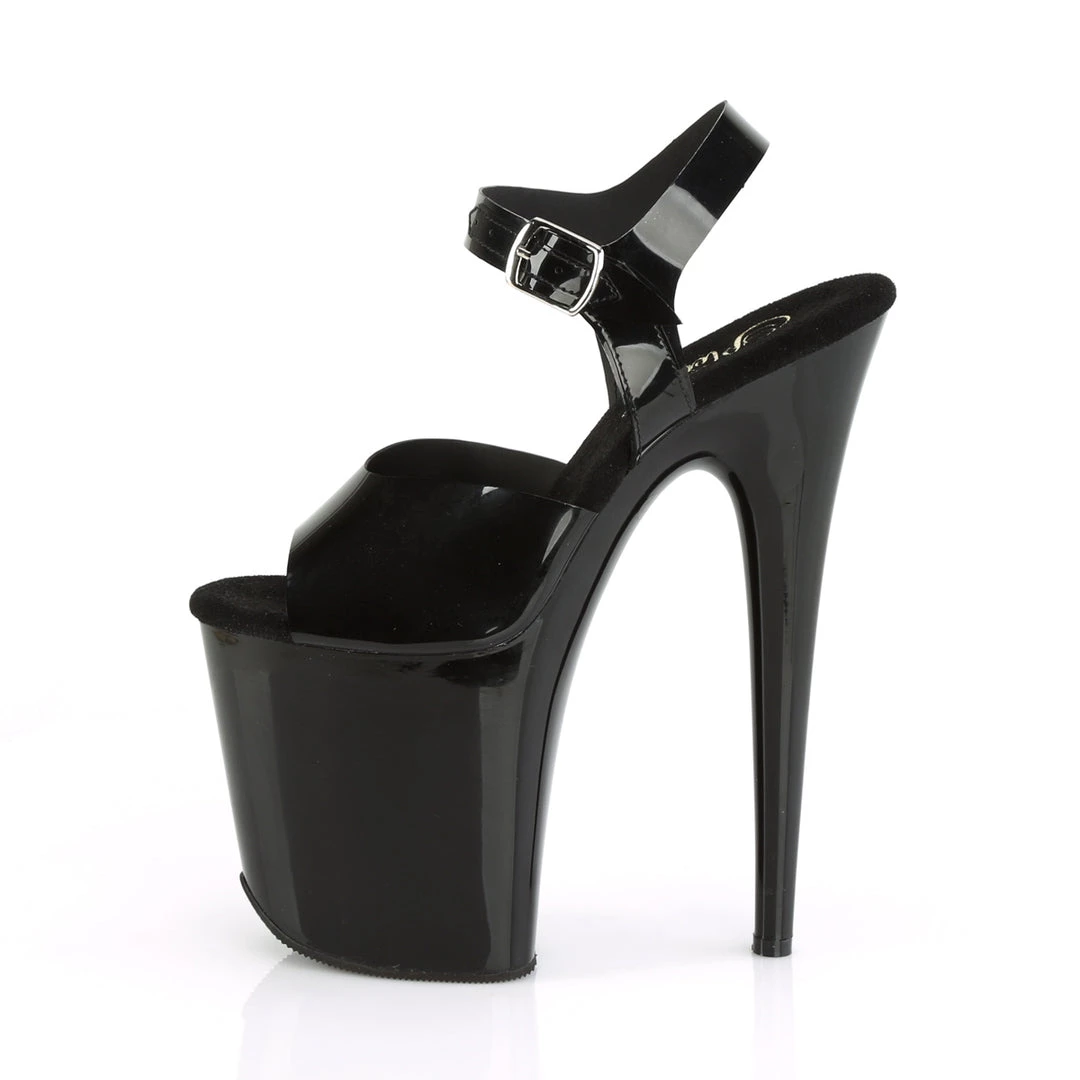 Flamingo 808 Black TPU Platform Heels with Peep Toe and Ankle Strap by Pleaser HeelsÂ