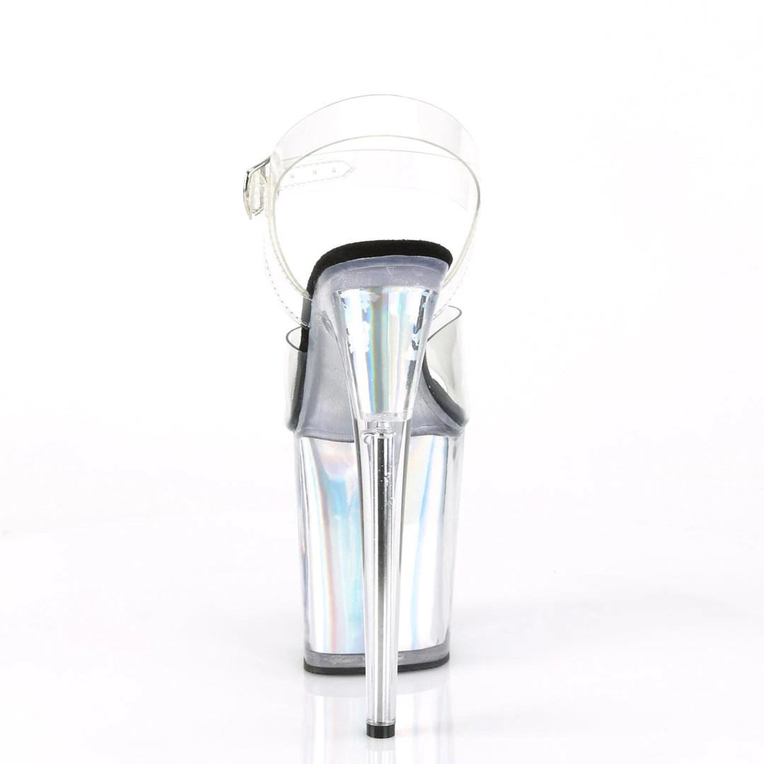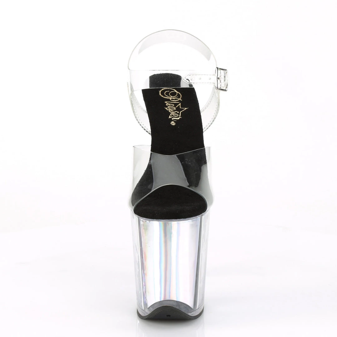 8 (200mm) Heel, 4 (100mm) Platform Ankle Strap Sandal Featuring Holographic Inserts in the Platform Bottom