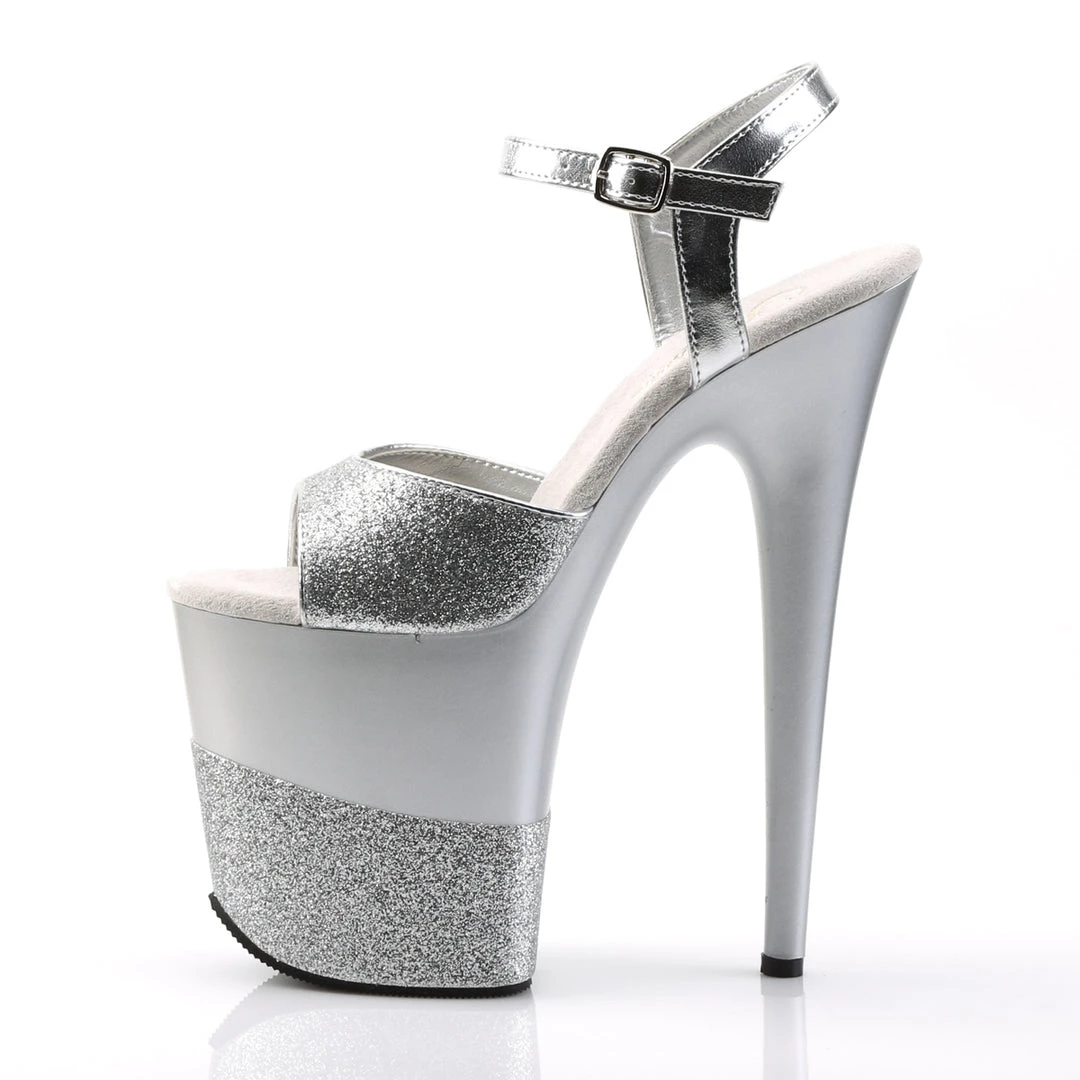 Flamingo 809-2G Silver Glitter Platform Heels by Pleaser Shoes