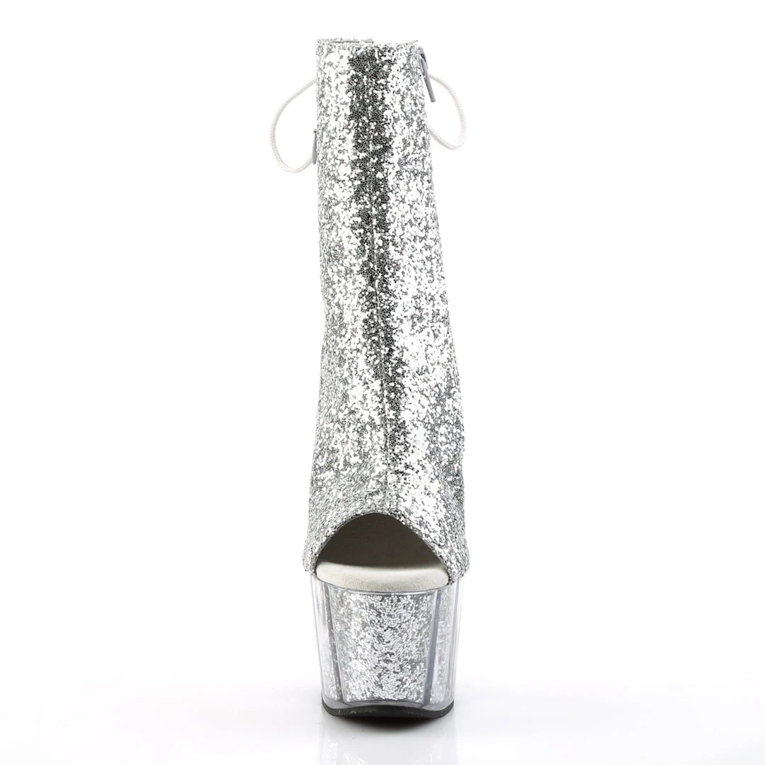 Adore 1018GÂ Silver Sparkly Platform Ankle Boots by Pleaser Shoes