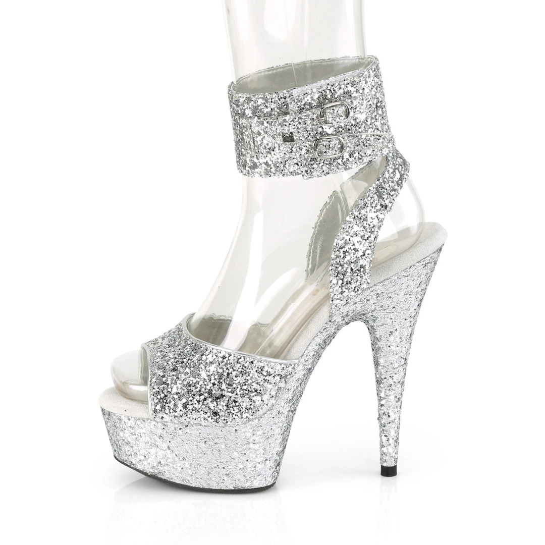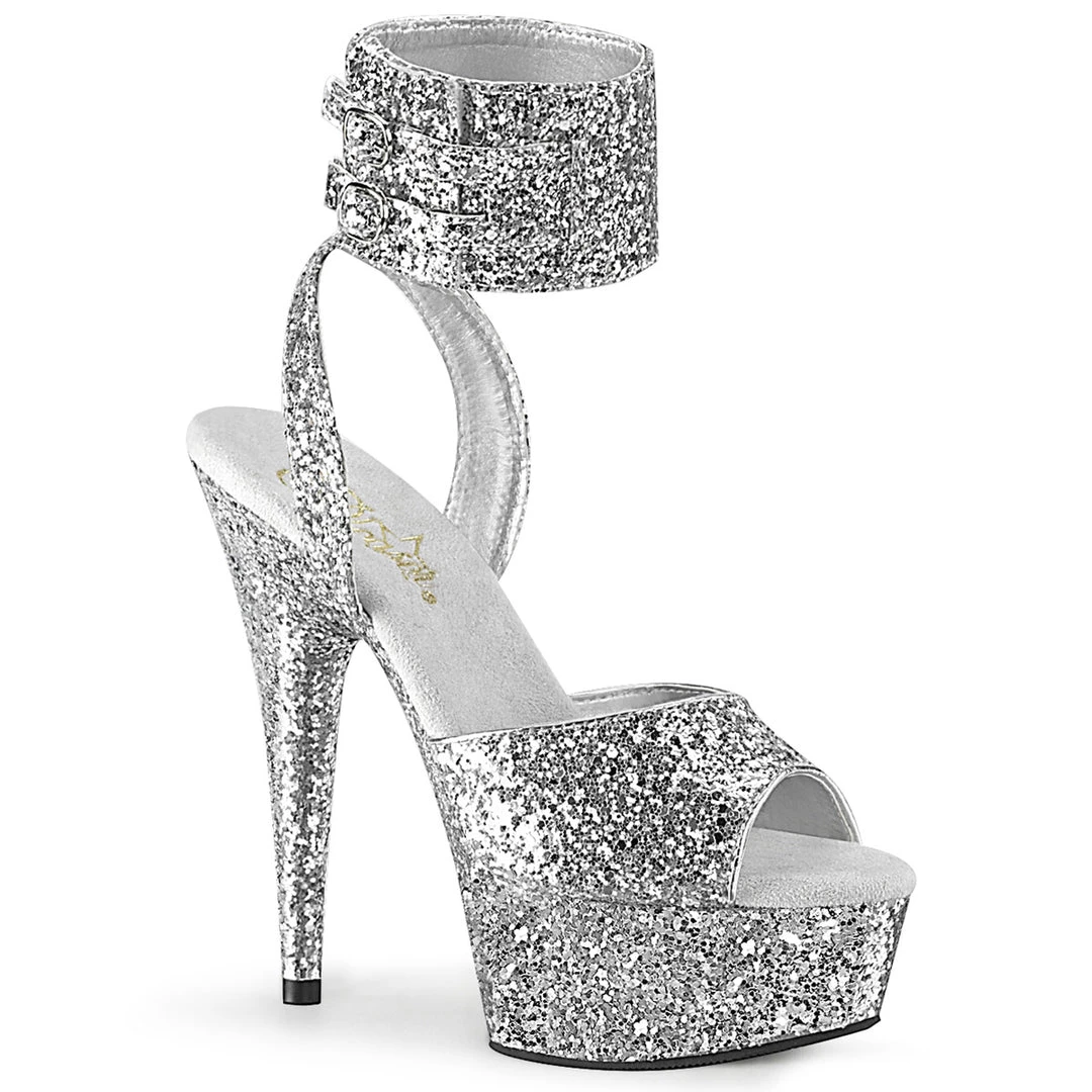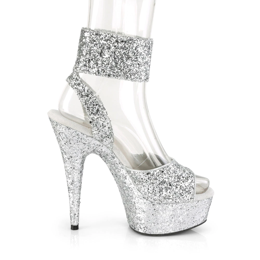 Delight 691LG Silver Glitter Platform Heels by Pleaser Shoes