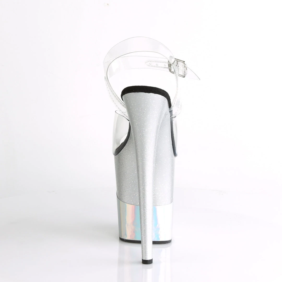 8 (203mm) Heel, 4 (102mm) Platform Ankle Strap Sandal Featuring Mini Iridescent Glitter & Hologram Wrapped Platforms
