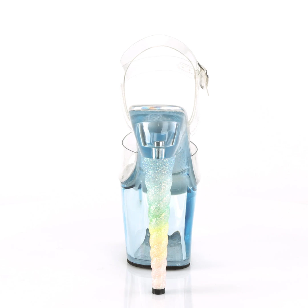 7 (178mm) Heel, 3 1/4 (83mm) Platform Ankle Strap Sandal Featuring Tinted Platform Bottom and Glittered Ombre Unicorn Heel