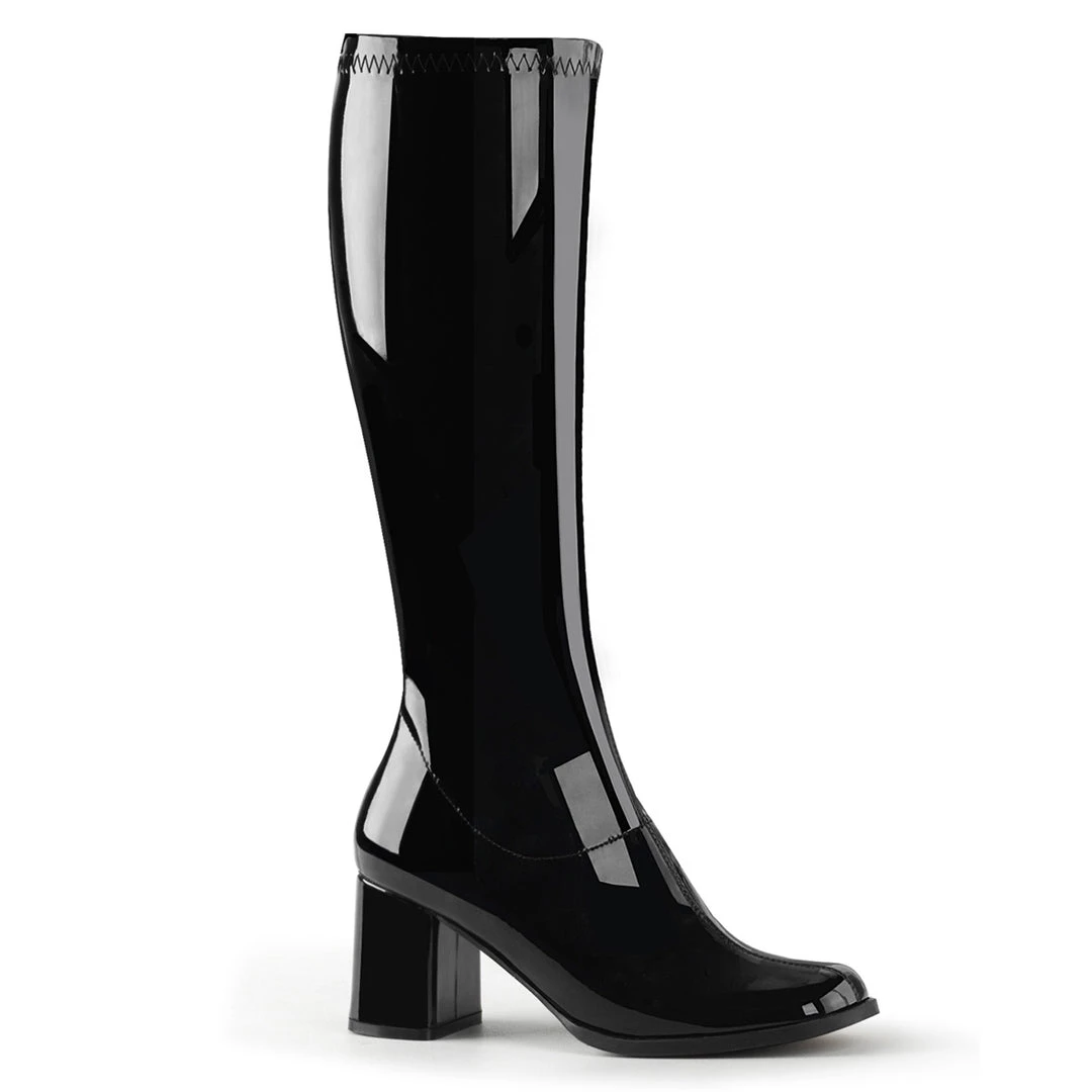 Gogo 300 Black Patent Knee High Boots by Pleaser Shoes