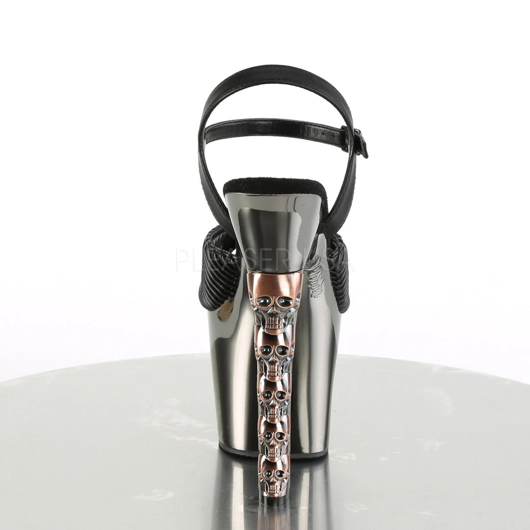 Hex 709 Black Quilted Faux Leather and Pewter Chrome With Skull Detail Platform Heels by Pleaser ShoesÂ