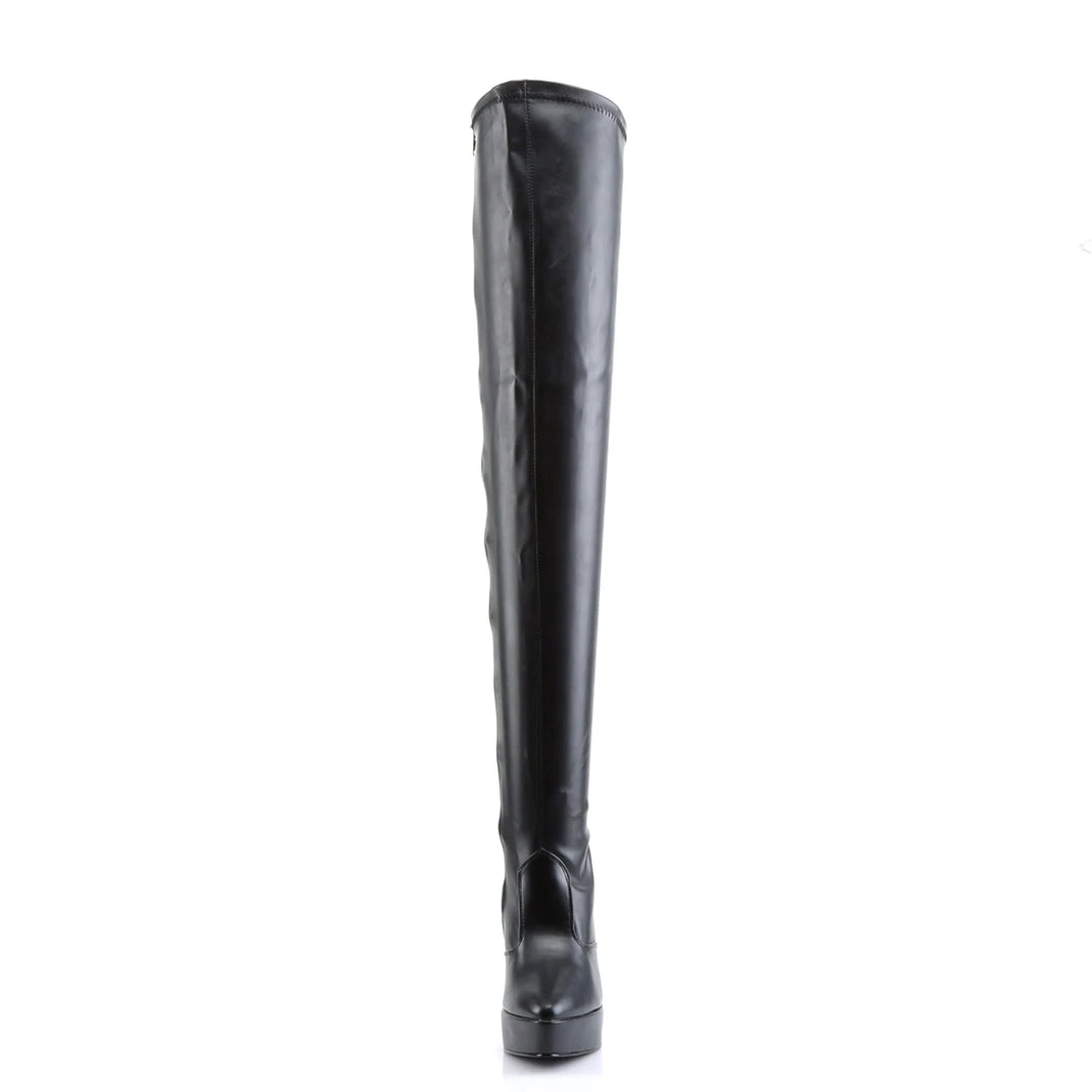 Indulge 3000 Black Faux Leather Thigh High Boots by Pleaser Shoes