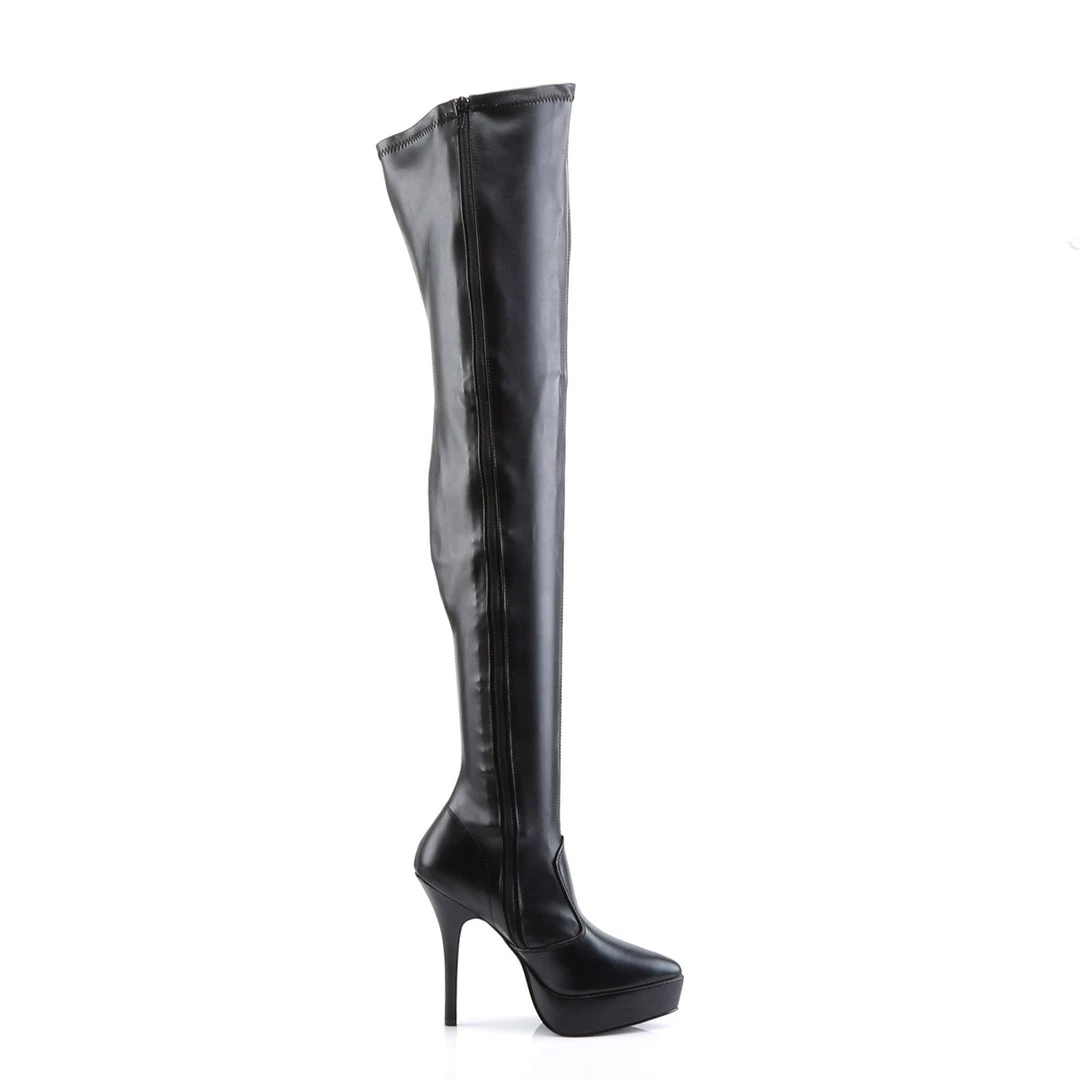 5 1/4″ (13.3cm) Heel, 1 1/4″ (3.2cm) Platform Stretch Thigh Boot, Full Inner Side ZipperÂ