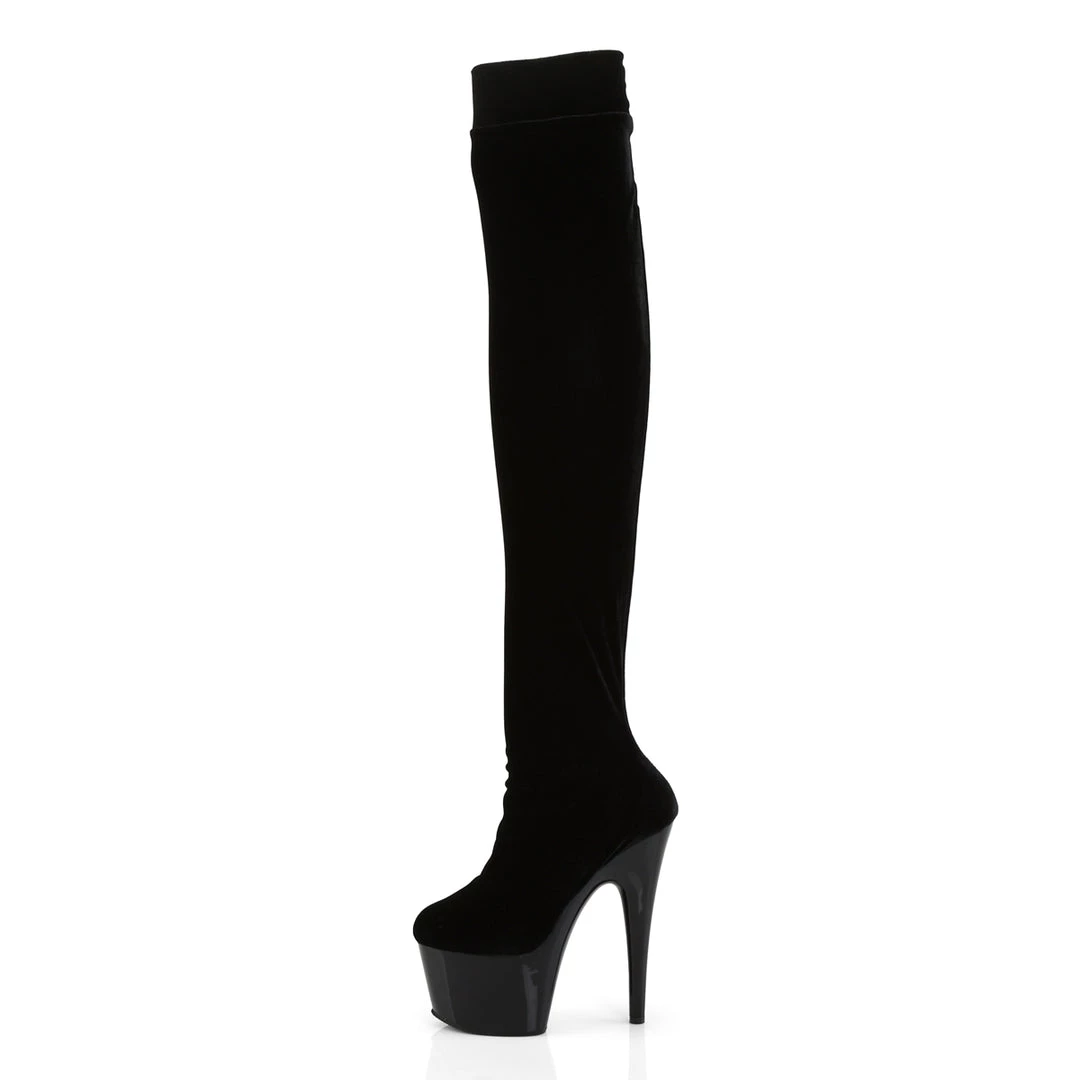 Adore 3002 Black Velvet Thigh High Platform Boots By Pleaser Shoes