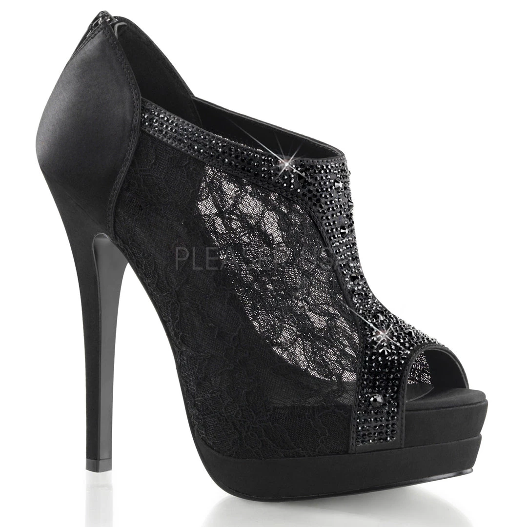 Bella 26 Black Lace Peep Toe Ankle Boots by Pleaser ShoesÂ