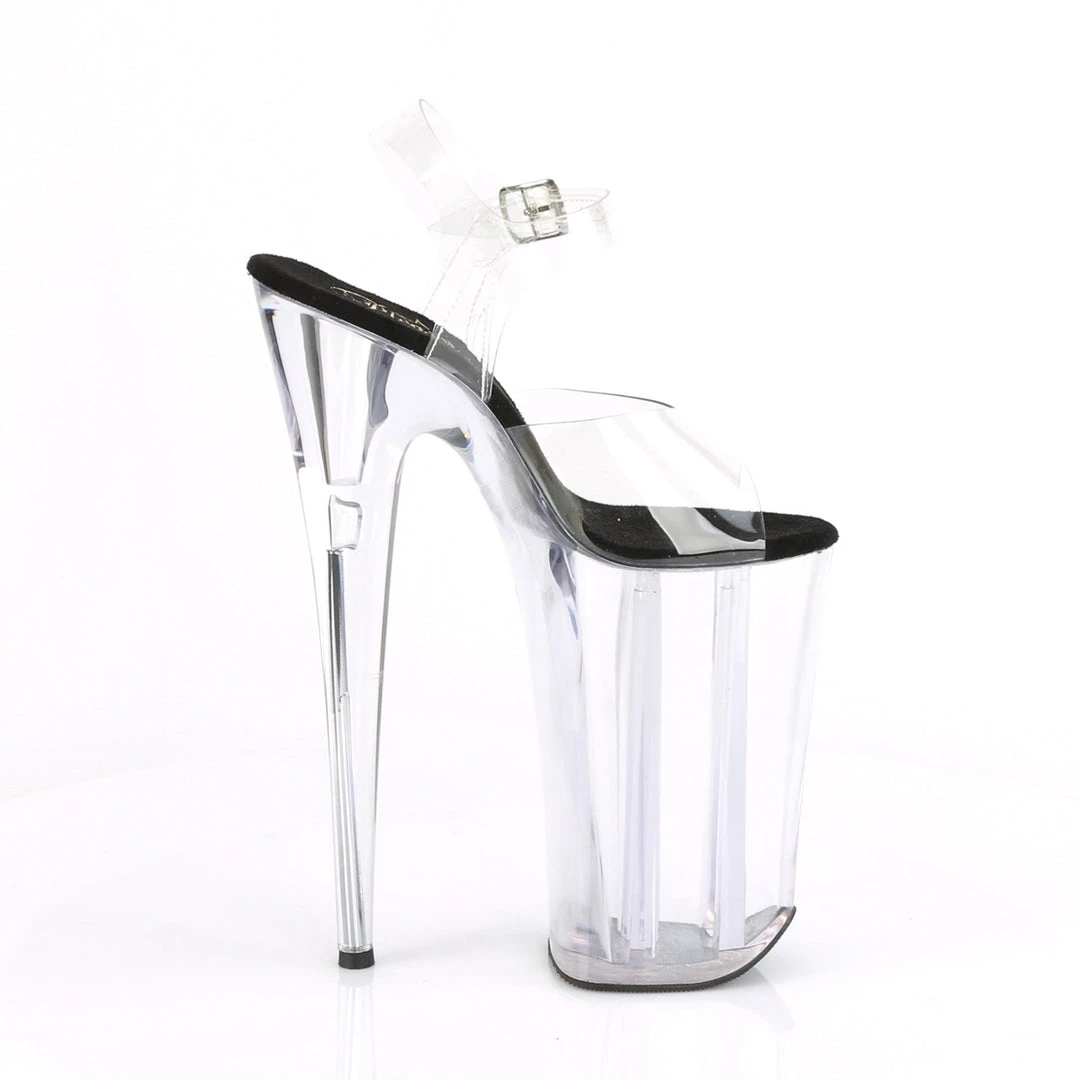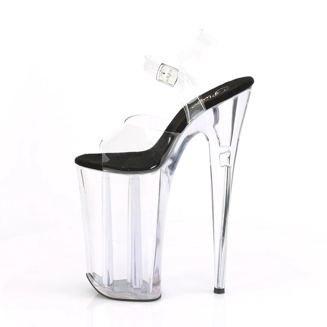 The sky’s the limit in these out of this world 10 inch clear platform heels! Not for the faint-hearted, these amazing platform pole dancing heels are one of Pleaser’s highest styles. the ankle strap secures the foot in place tightly and comfortably, whilst the open toe flatters the foot. These shoes come with a warning!Â