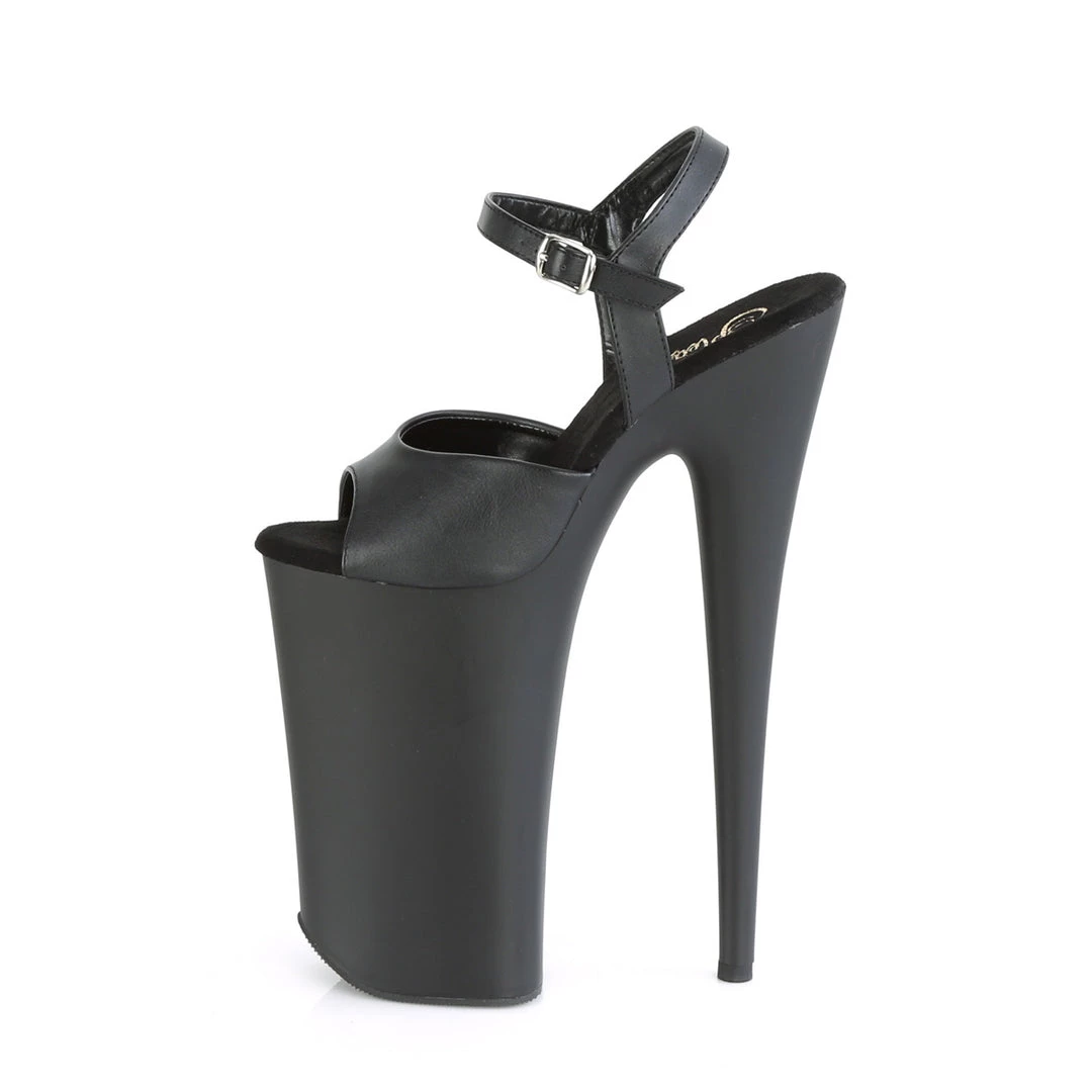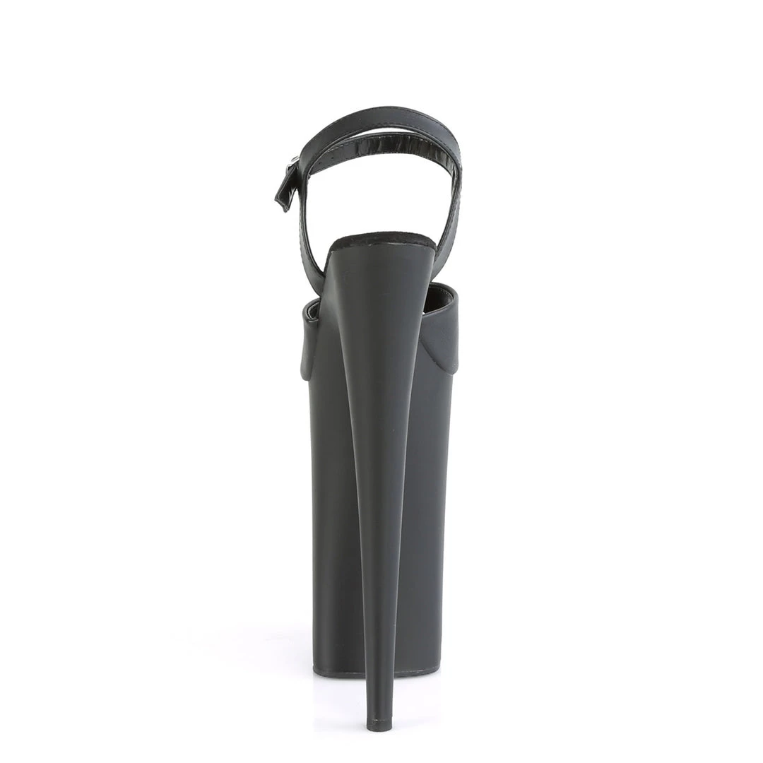 Beyond 009 Black Matte 10″ High Heel High Platform Peep Toe With Ankle Strap Sandals by Pleaser Shoes.