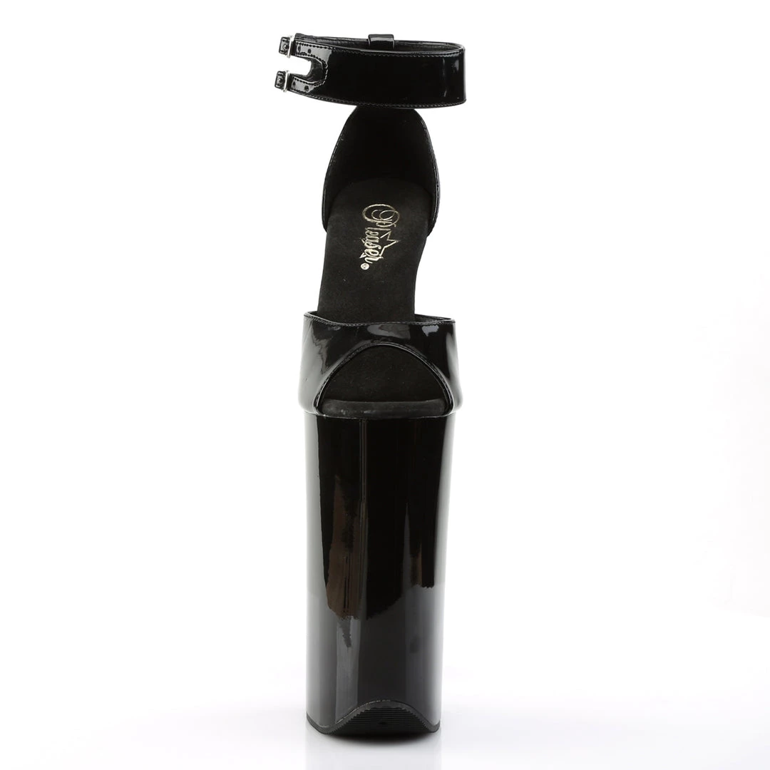 Hot as hell and high as heaven. These 10 inch black patent Pleaser Beyond platforms feature a sexy peep toe and flattering ankle strap.