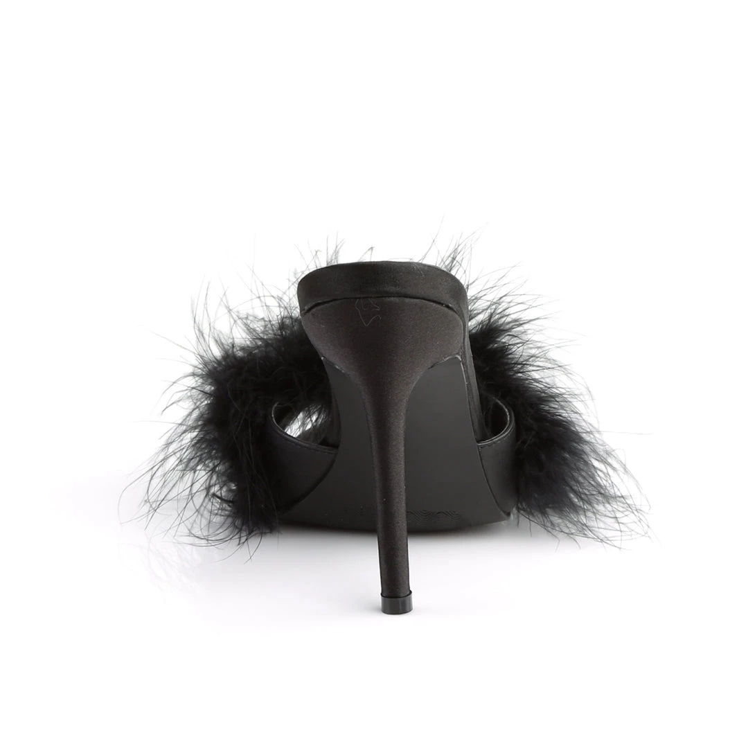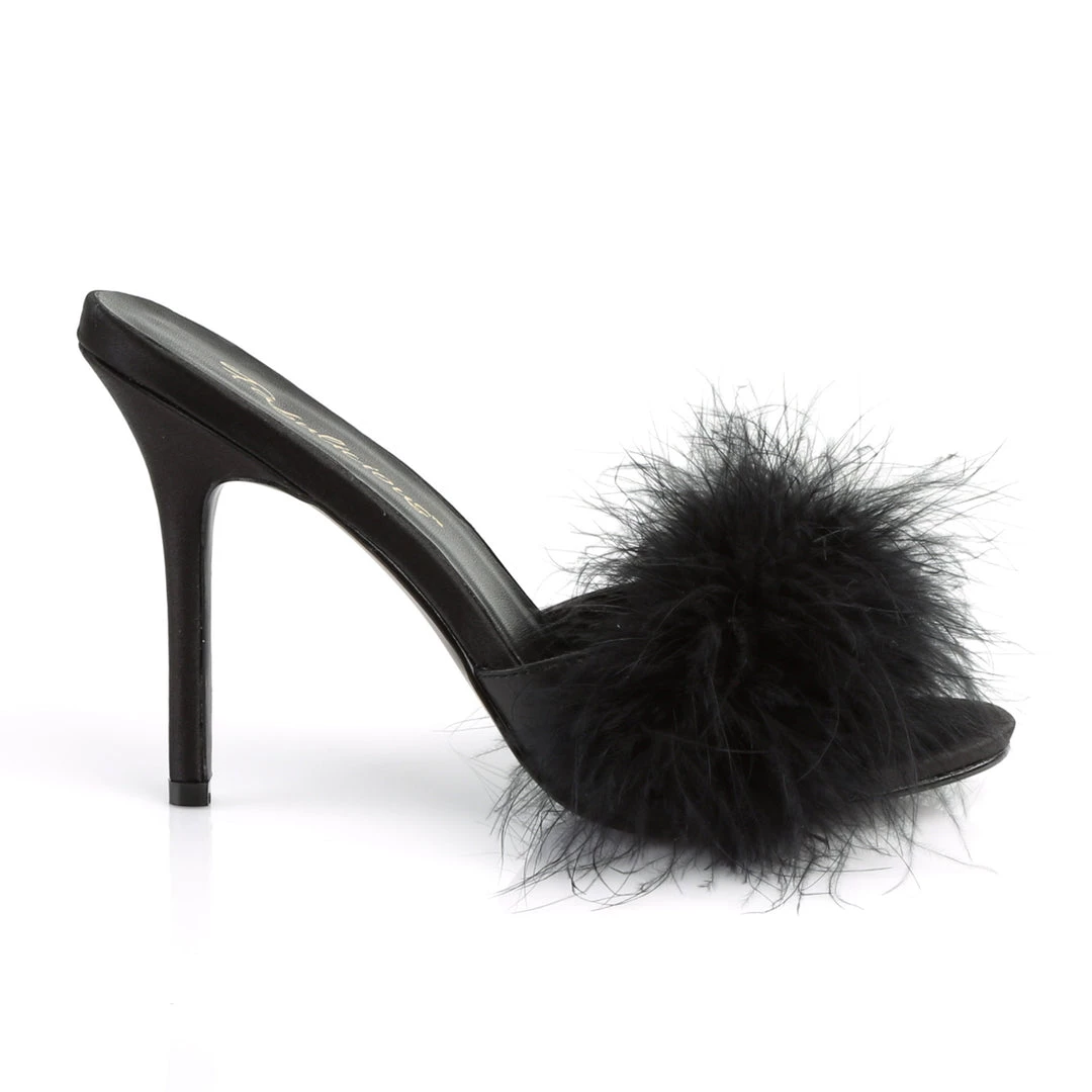 Classique 01F Black Furry Marabou Slipper Sandals by Pleaser ShoesÂ