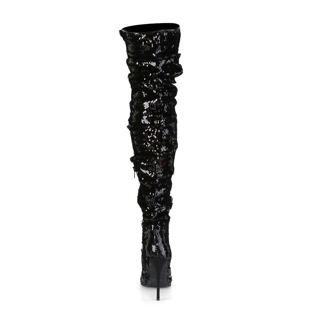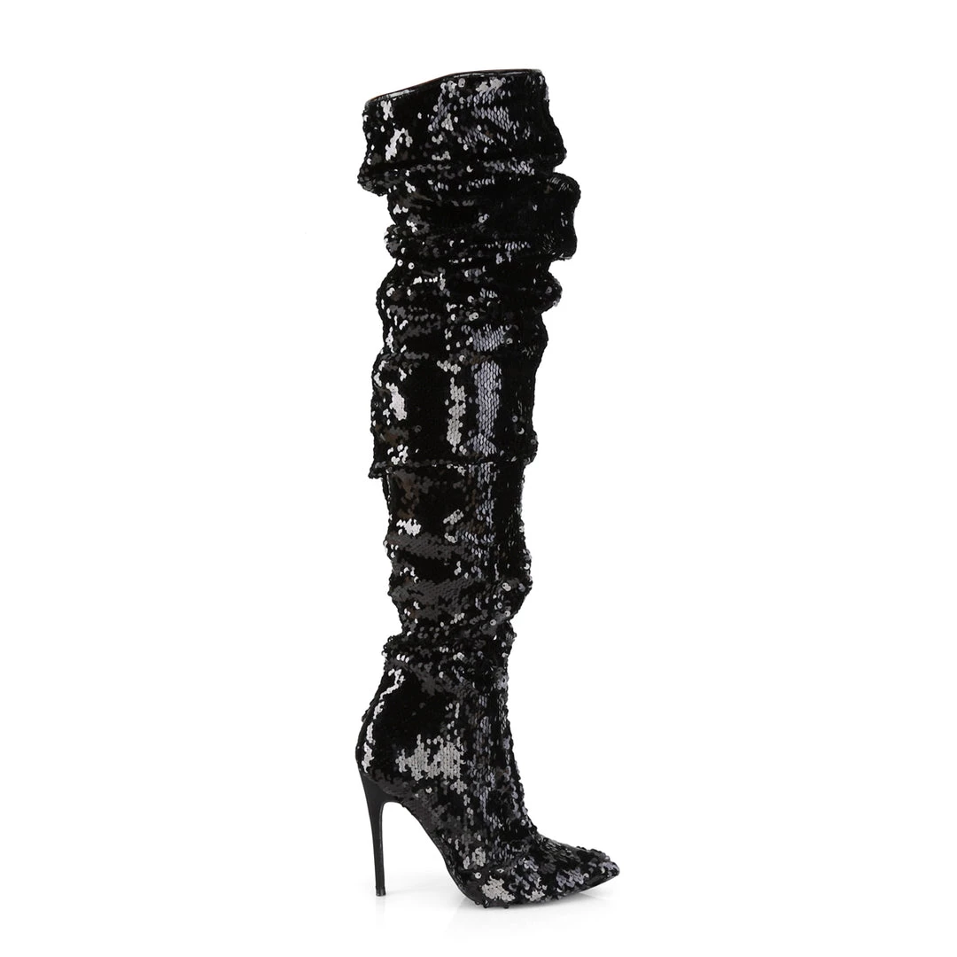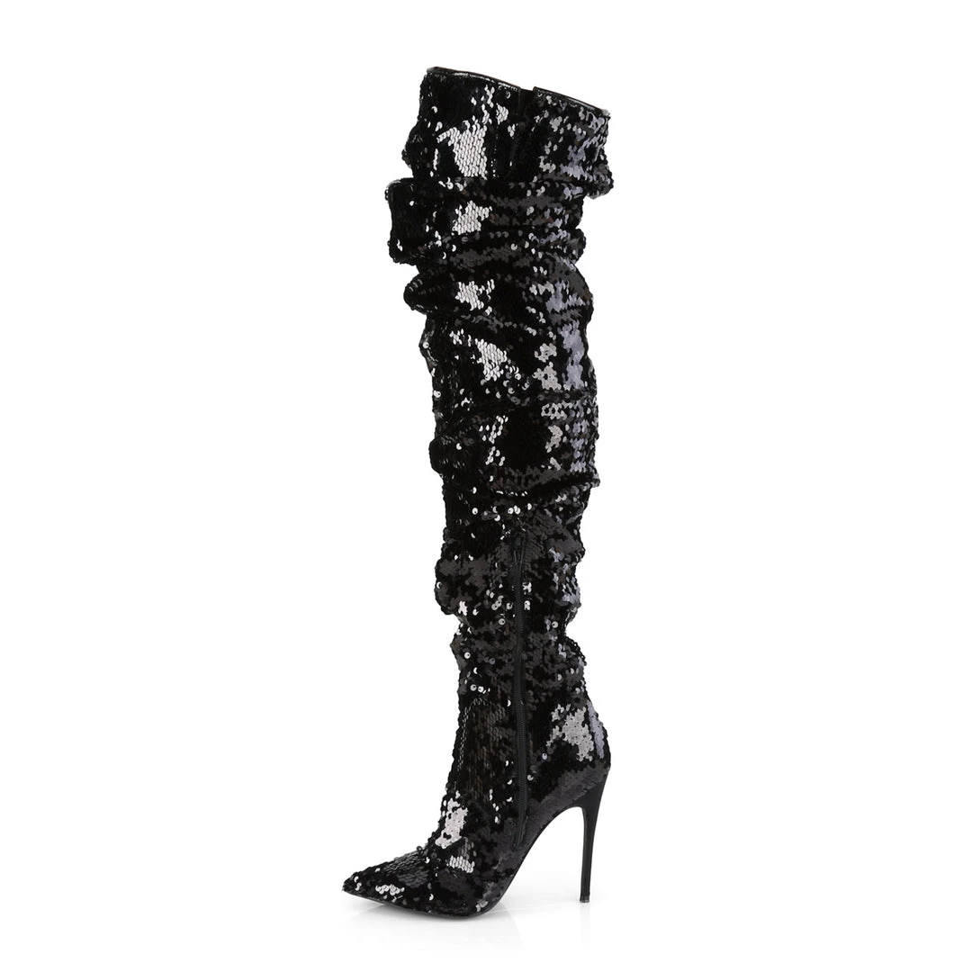 Courtly 3011 Black Sequin Slouch Thigh High Boots by Pleaser ShoesÂ