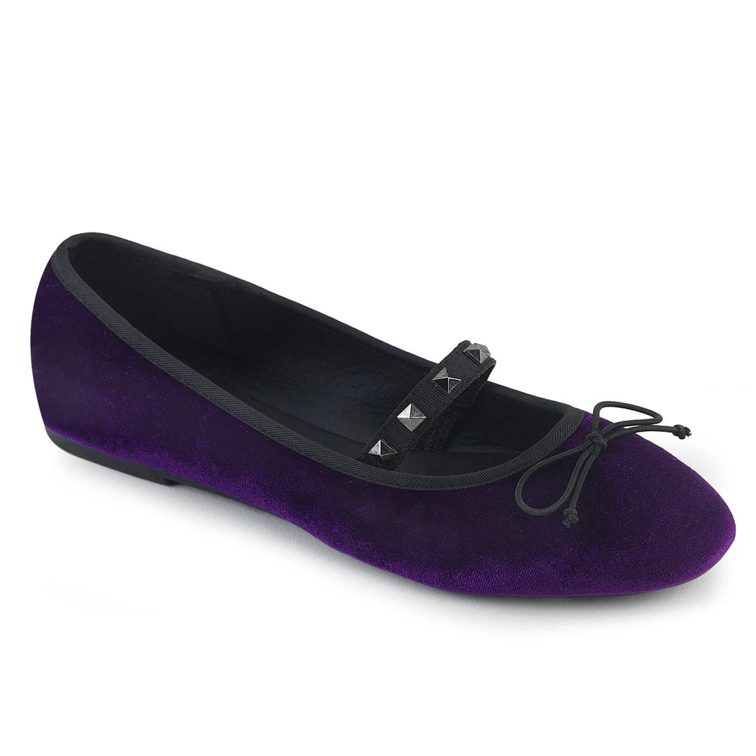 Drac 07 Purple Velvet Mary Jane Ballet Flats by Pleaser Shoes