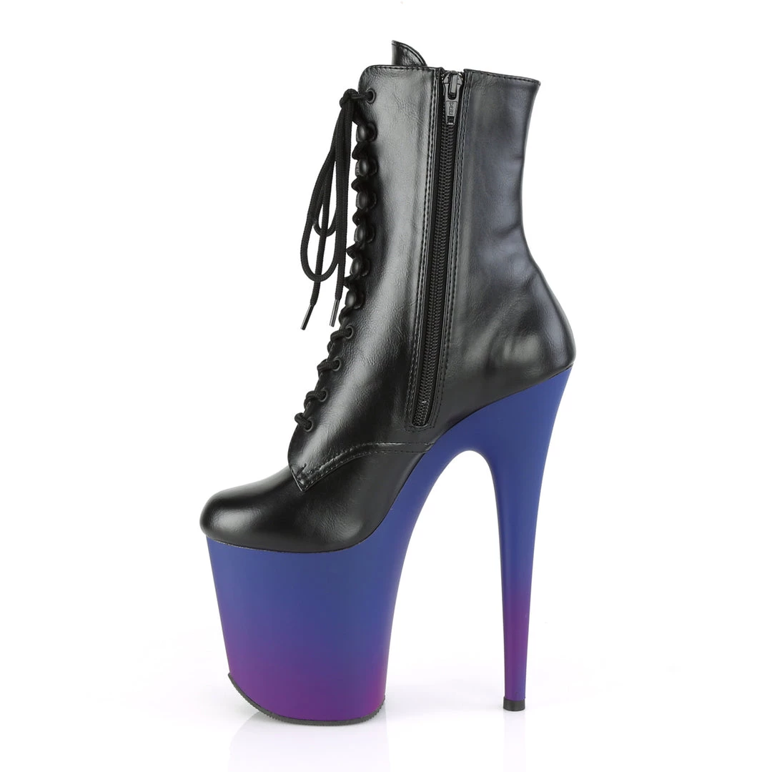 8 (200mm) Heel, 4 (100mm) Platform Lace-Up Ankle Boot Featuring Blue Purple Ombre Platform Bottom, Inside Zipper Closure